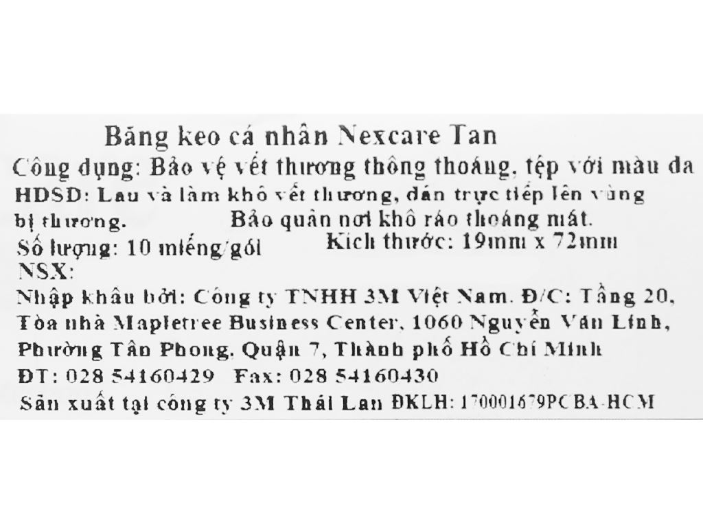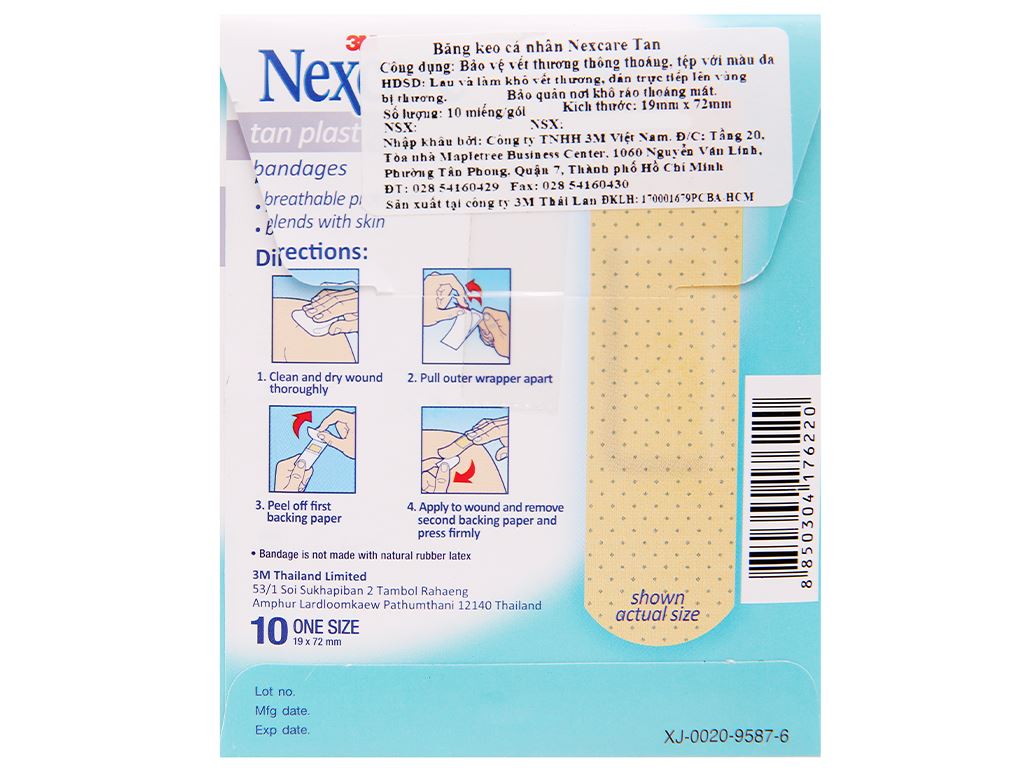 Băng cá nhân Nexcare màu da 10 miếng (19x72mm)