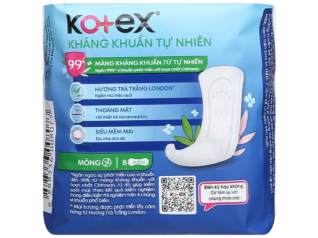 Băng vệ sinh hằng ngày Kotex siêu mềm kháng khuẩn 8 miếng