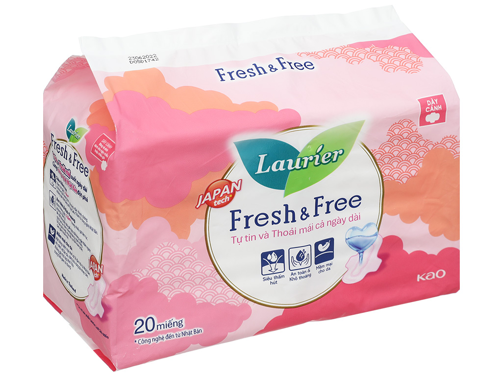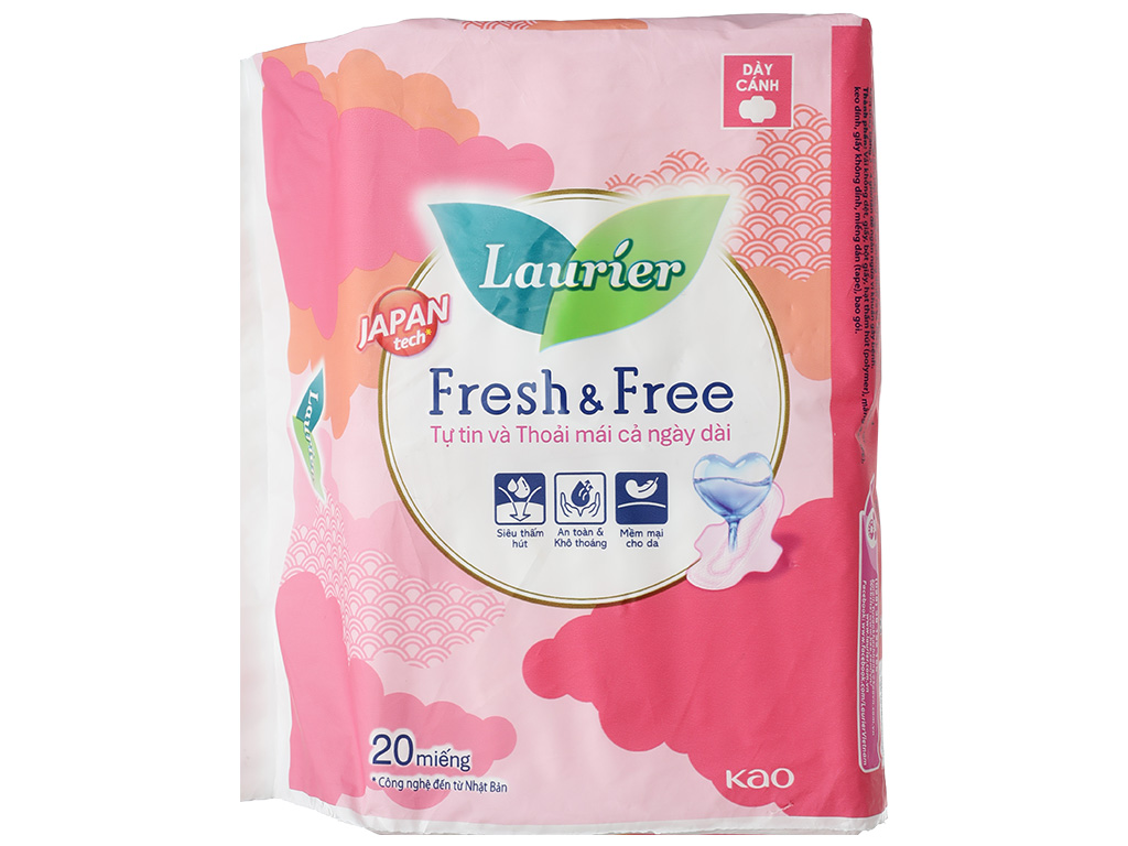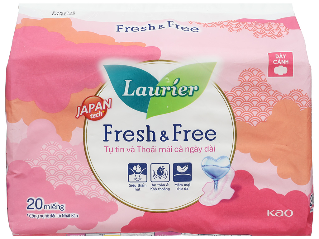 Băng vệ sinh Laurier Fresh and Free siêu thấm Dày có cánh 20 miếng