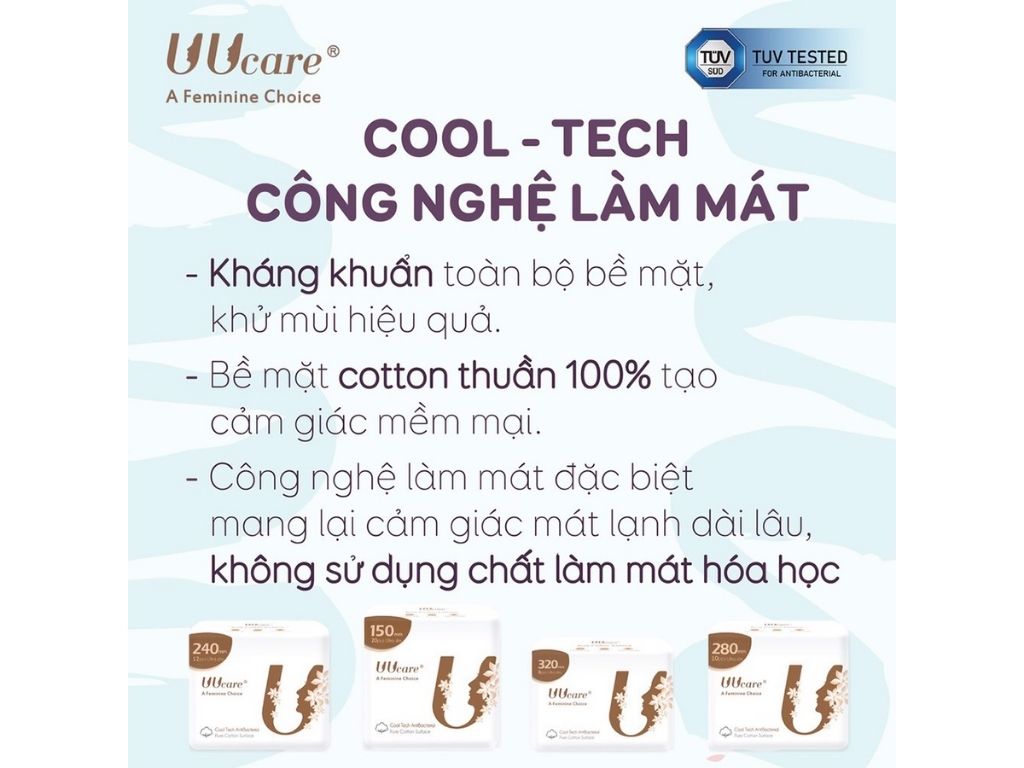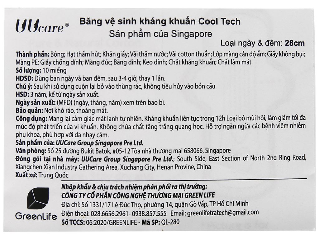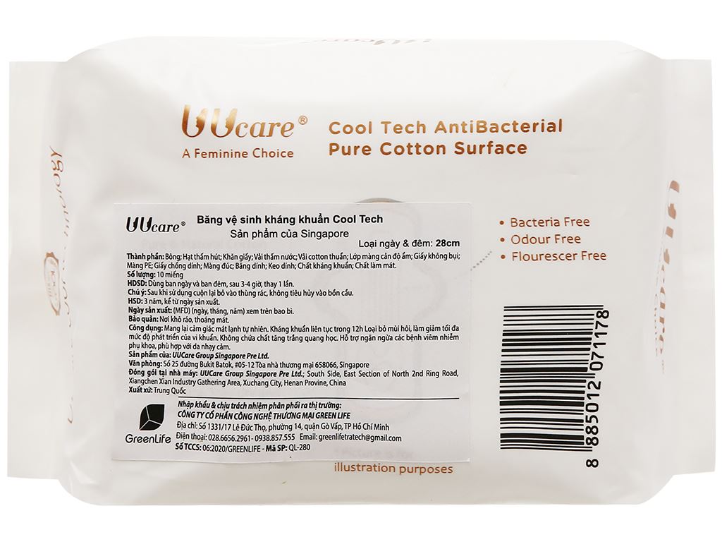 Băng vệ sinh ngày và đêm Uucare Cool Tech kháng khuẩn 10 miếng