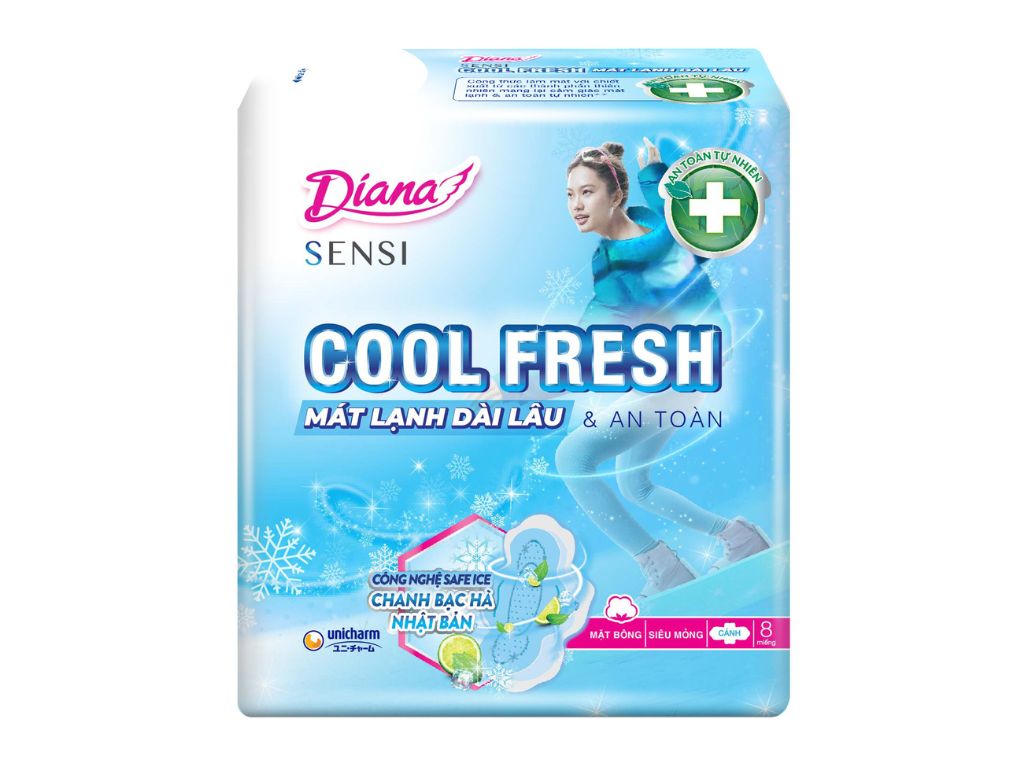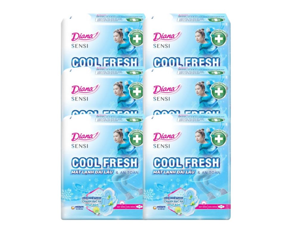 Lốc 6 gói băng vệ sinh Diana Sensi Cool Fresh kiểm soát mùi mỏng cánh 8 miếng