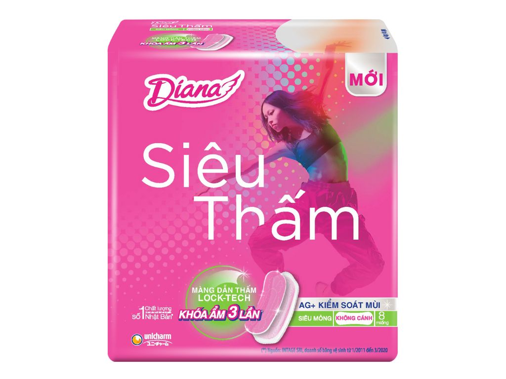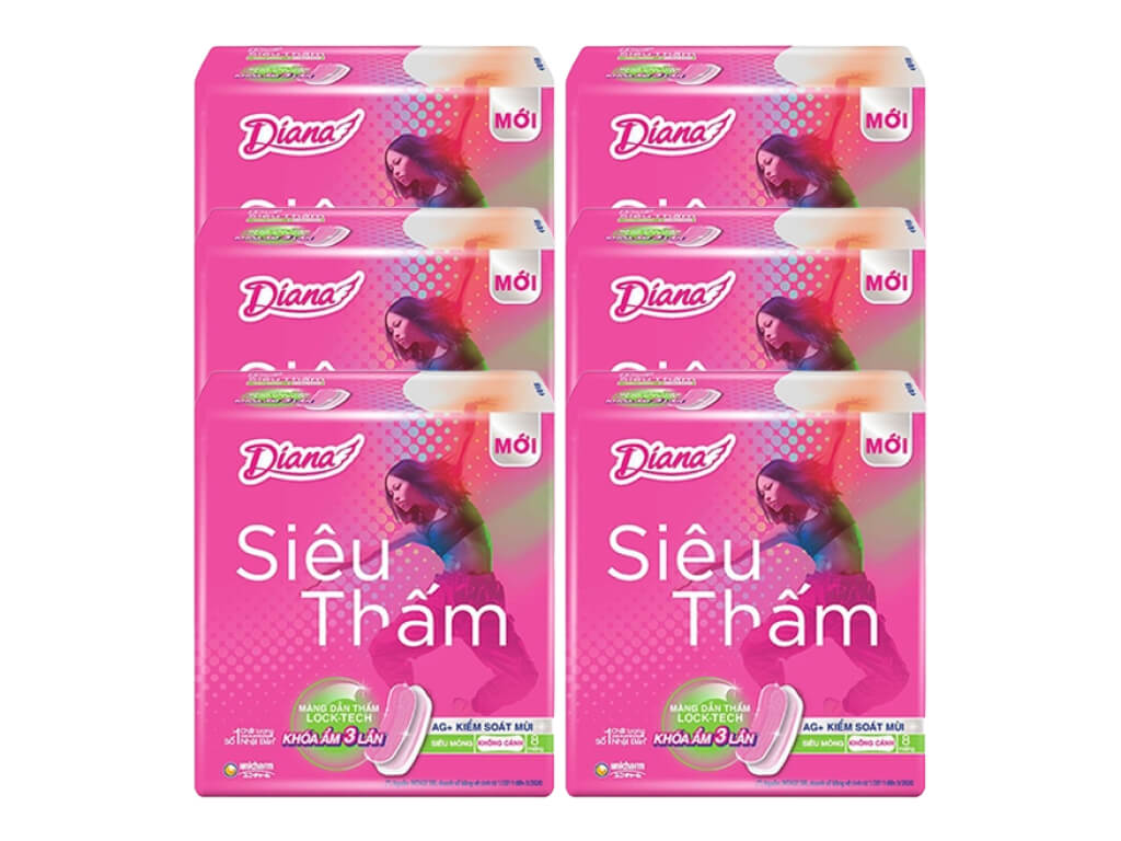 Lốc 6 gói băng vệ sinh Diana siêu thấm siêu mỏng không cánh 8 miếng