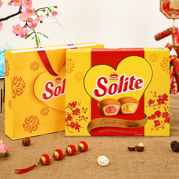 Bánh bông lan kem bơ sữa Solite hộp 276g (12 cái): Nhân kem trứng bên trong cực béo kết hợp lớp vỏ bánh mềm xốp. Hiện tại sản phẩm được bán với giá 60.000đ.