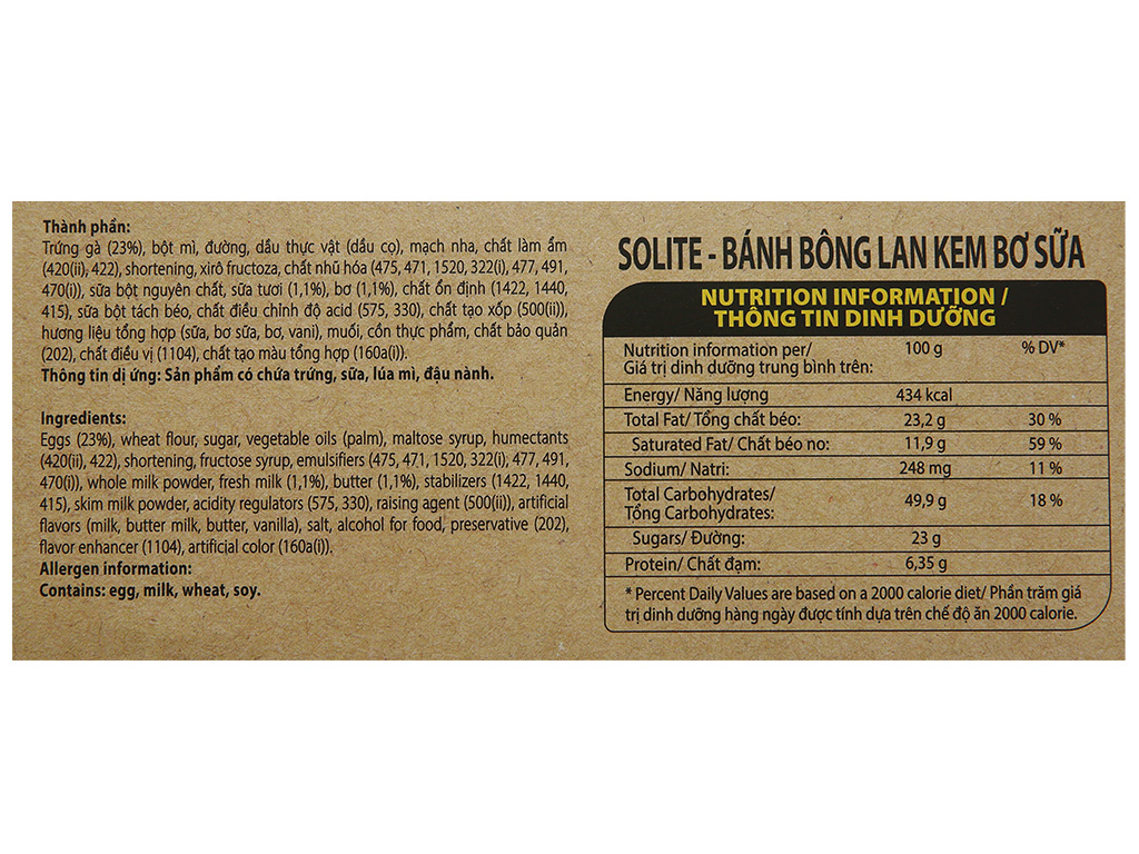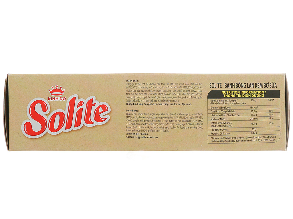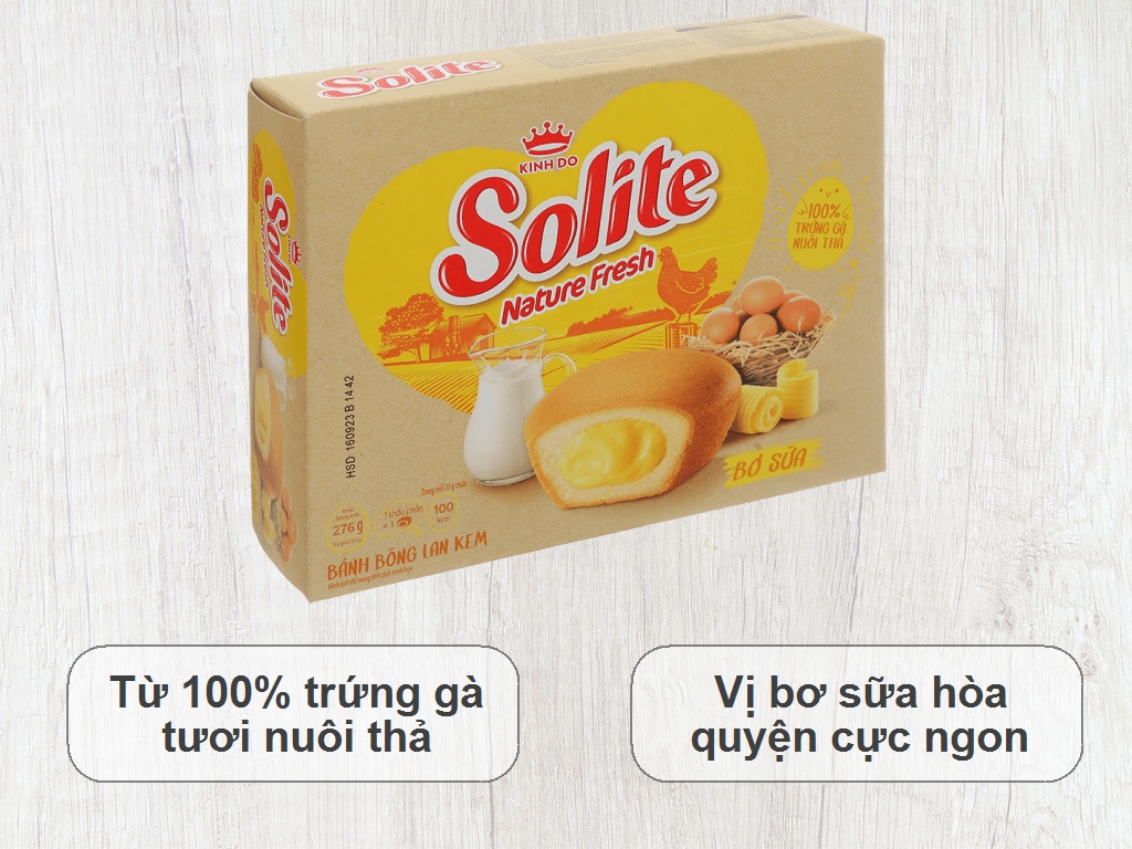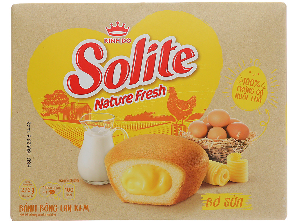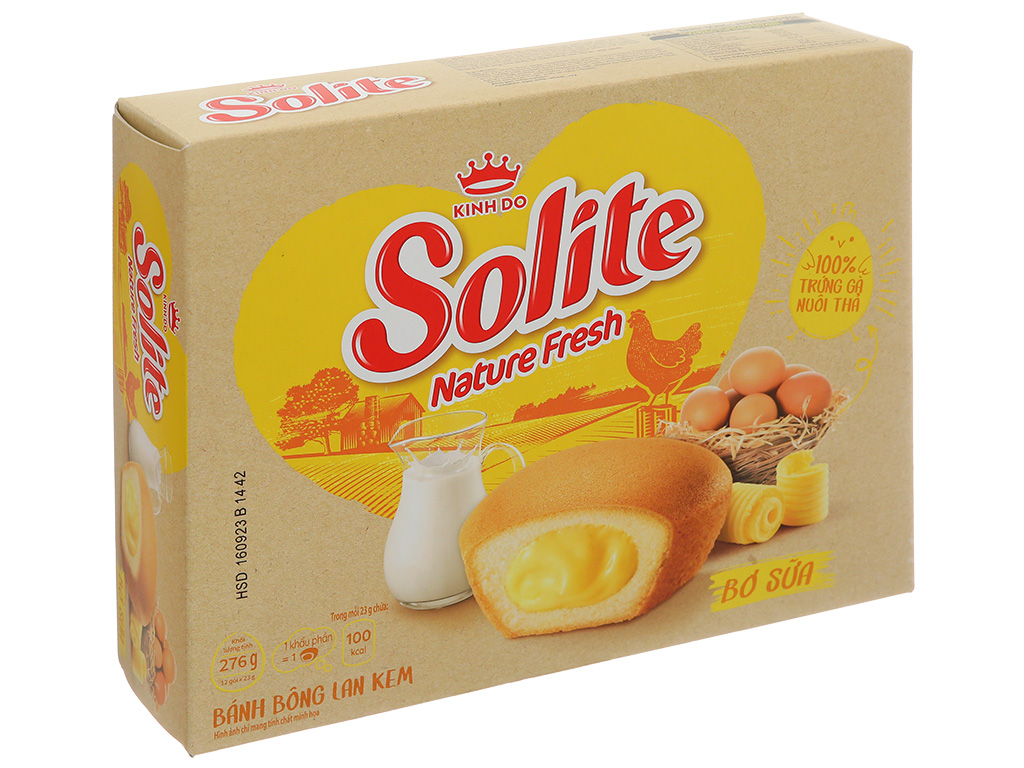 Bánh bông lan tròn kem vị bơ sữa Solite hộp 276g (12 cái)