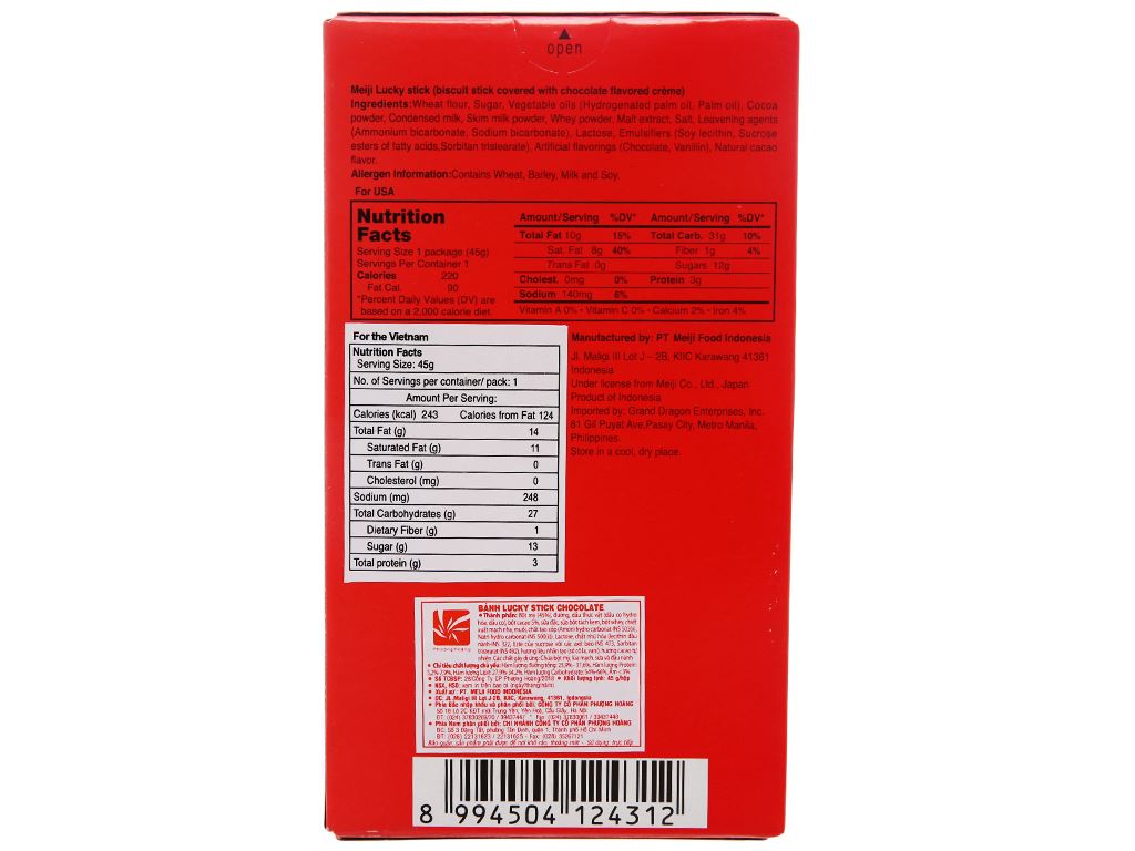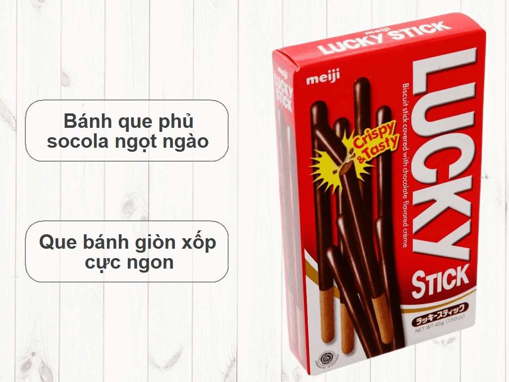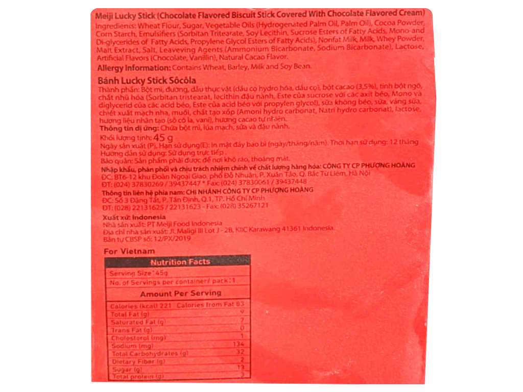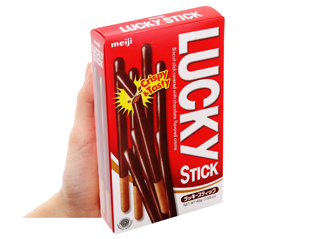 Bánh que Meiji Lucky Stick phủ kem hương socola hộp 45g