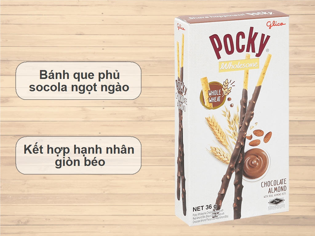 Bánh que Glico Pocky ngon khỏe đẹp vị socola hạnh nhân hộp 36g
