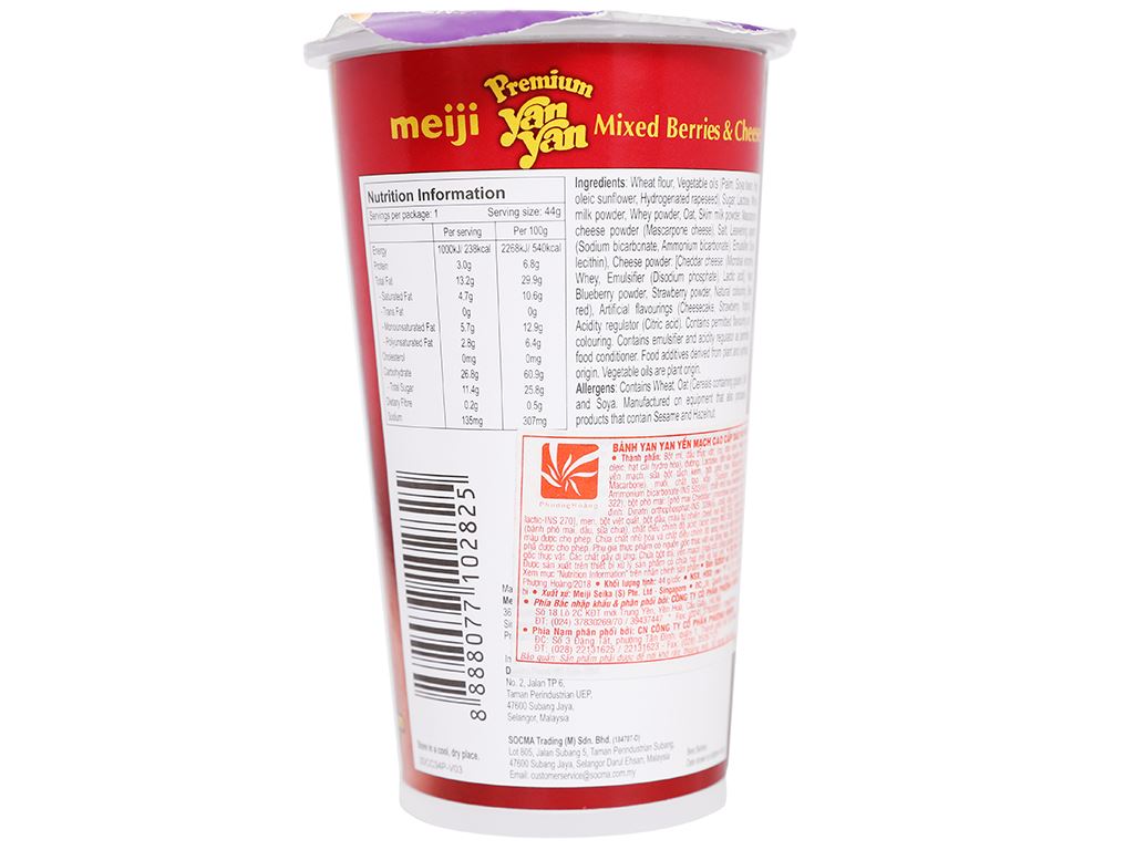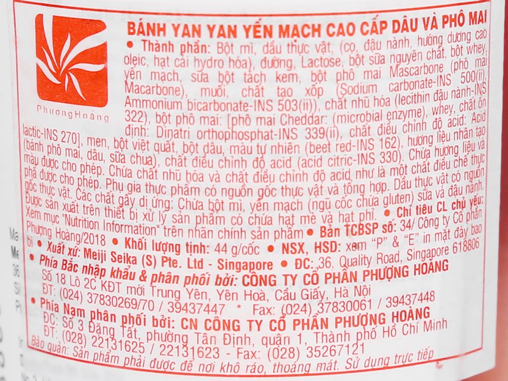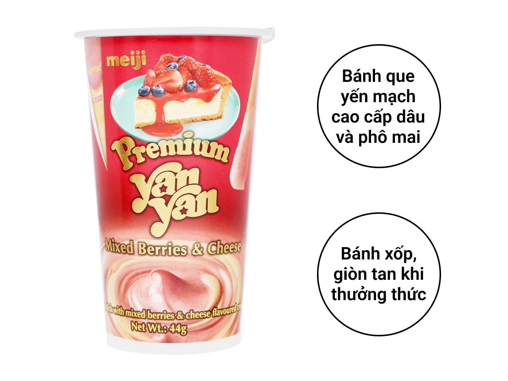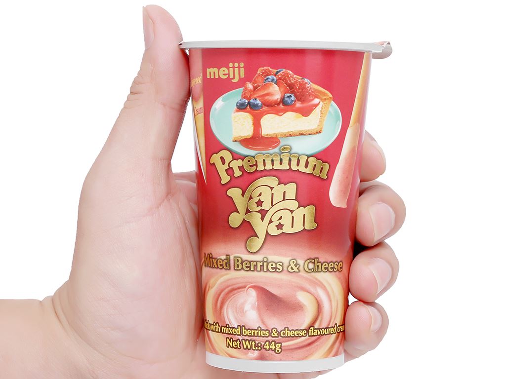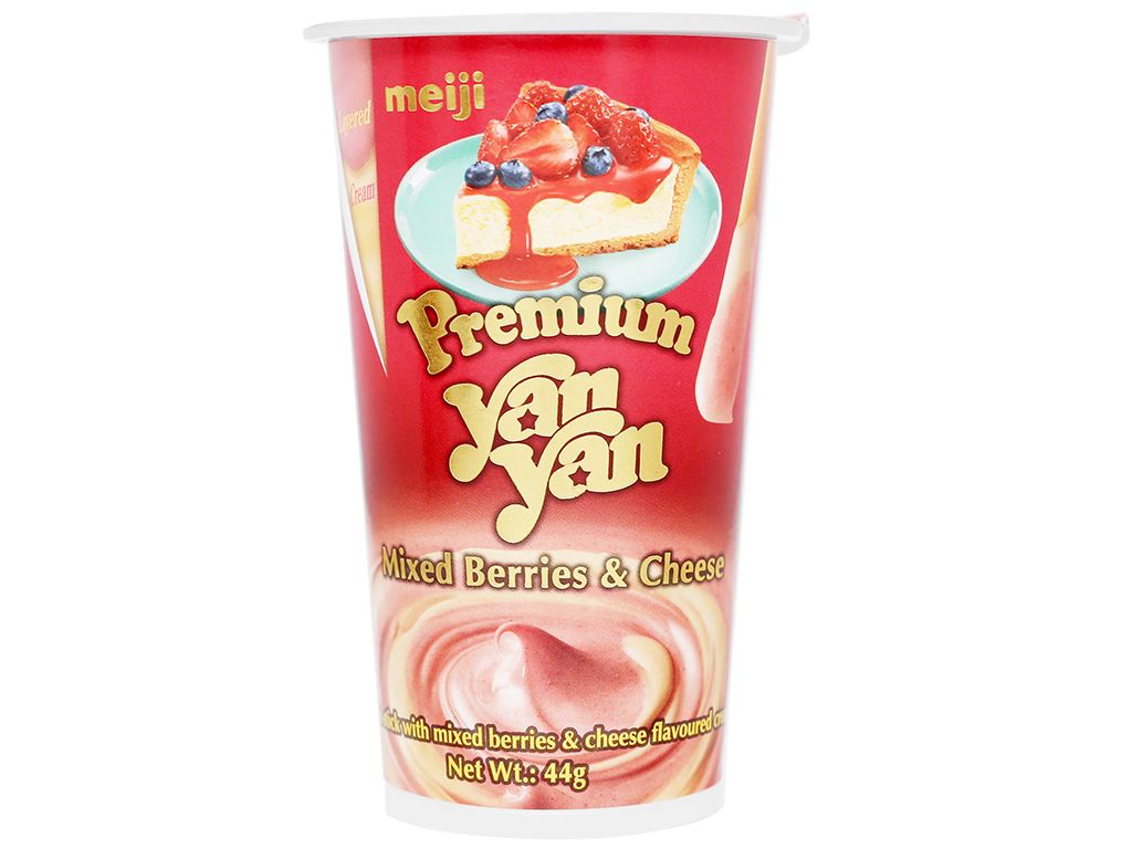 Bánh que Meiji Yan Yan Premium yến mạch cao cấp dâu và phô mai ly 44g
