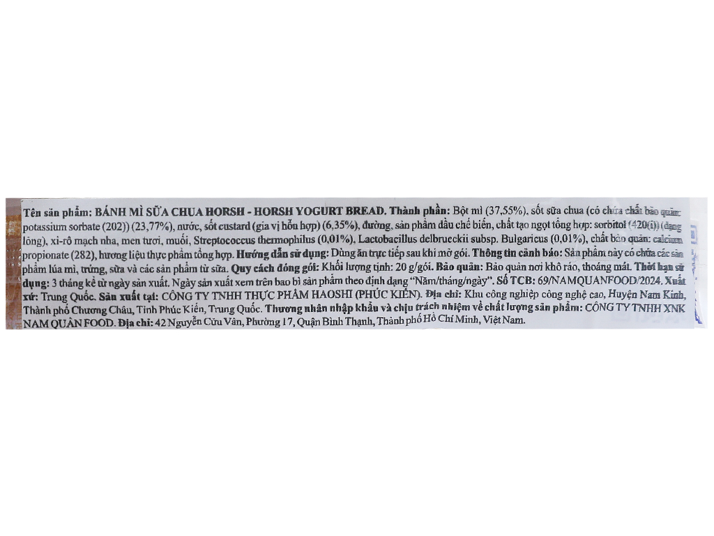 Bánh mì nhân sữa chua Horsh gói 20g