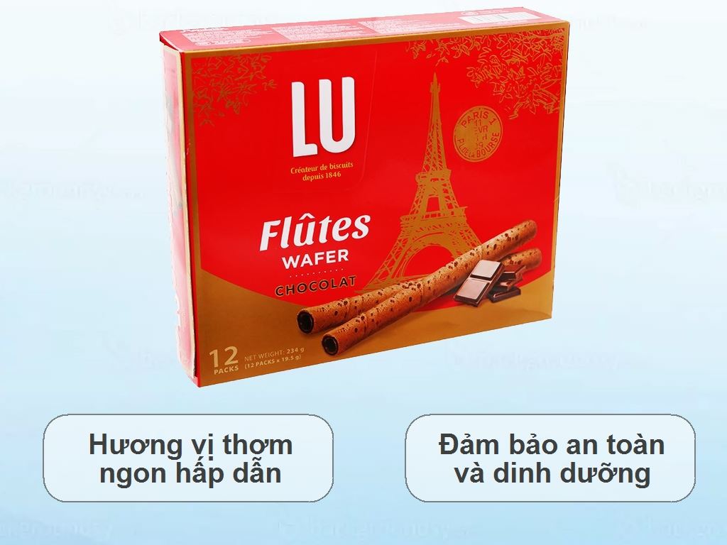 Hộp 12 gói bánh quế sô cô la Lu Flutes Wafer 19.5g