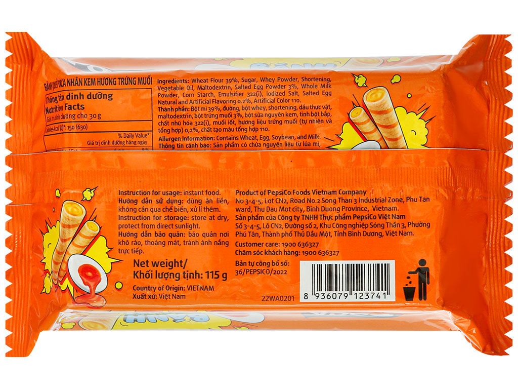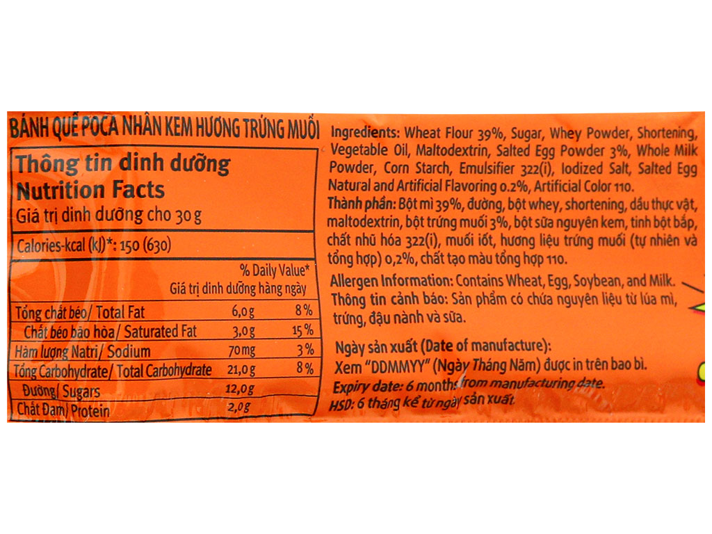 Bánh quế nhân kem hương trứng muối Poca gói 115g