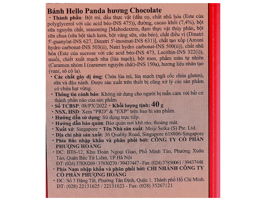 Bánh gấu nhân kem socola Meiji Hello Panda hộp 40g