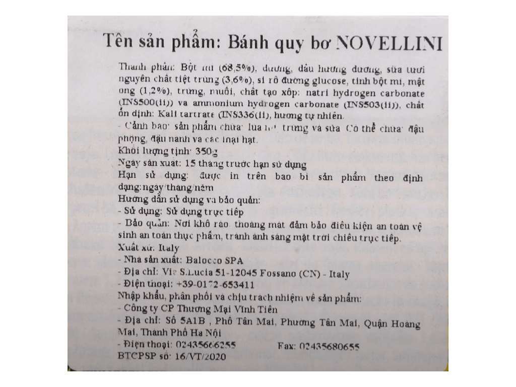 Bánh quy bơ Novellini gói 350g