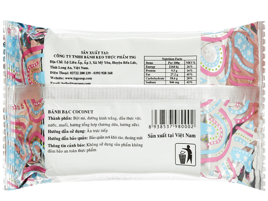 Bánh bạc vuông phủ đường Tích Sỹ Giai Coconut Cracker gói 180g