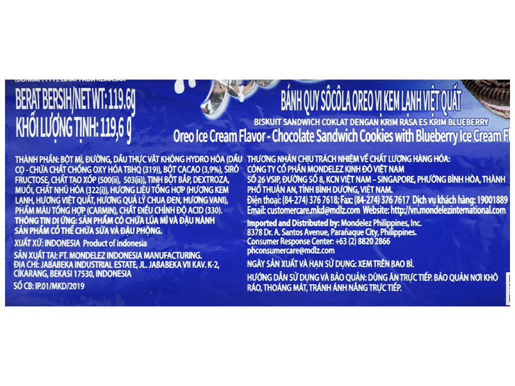 Bánh quy socola vị kem lạnh việt quất Oreo gói 119.6g