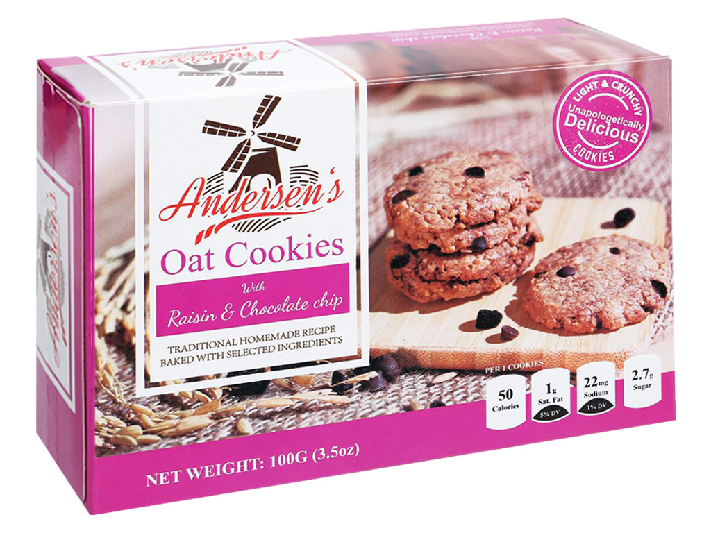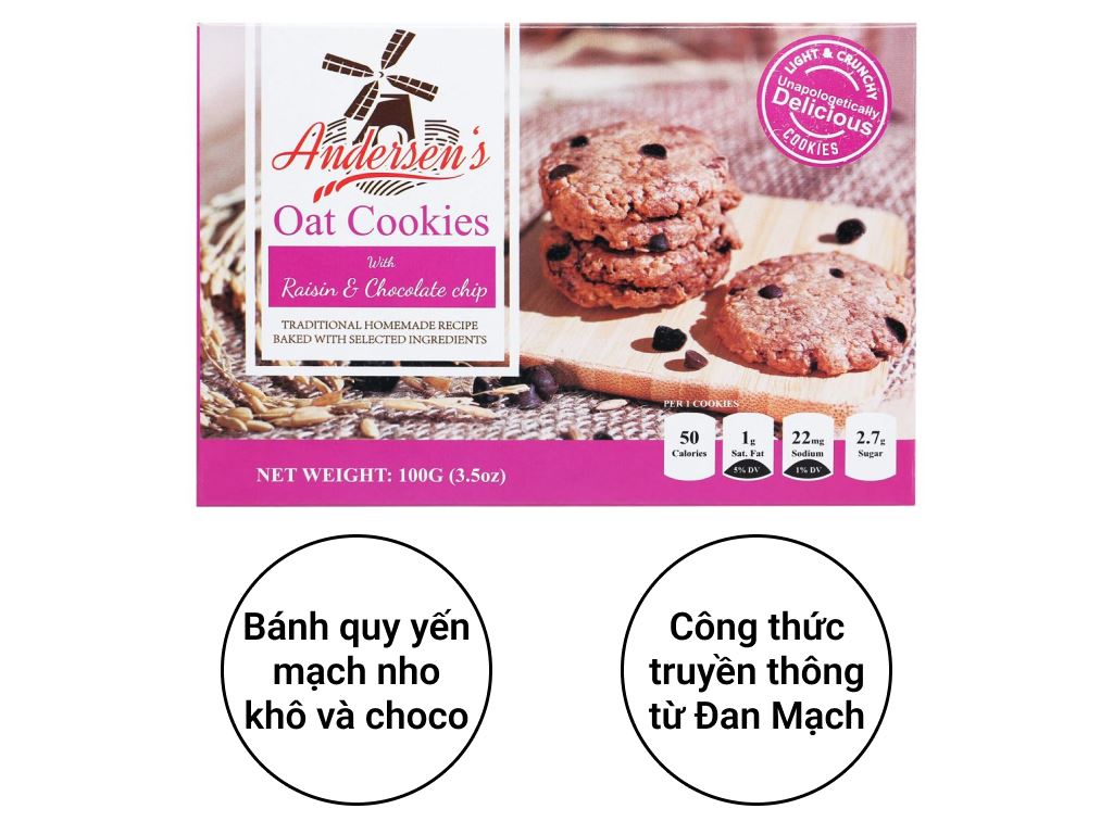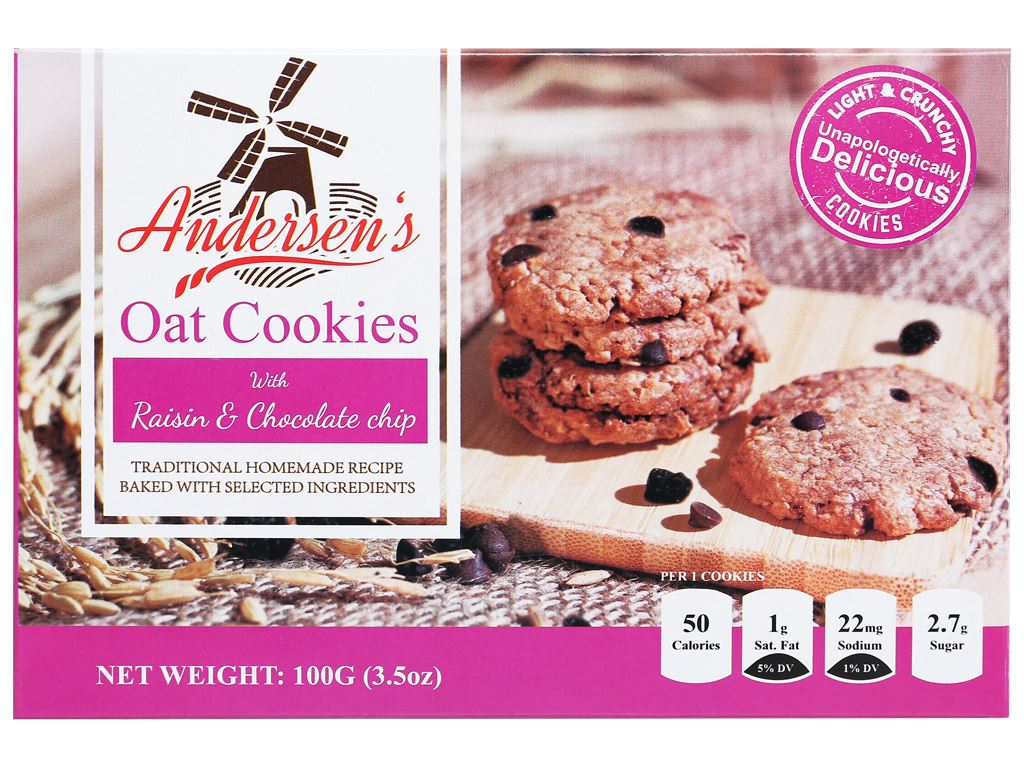 Bánh quy yến mạch nho khô và chocolate chips Andersen's hộp 100g
