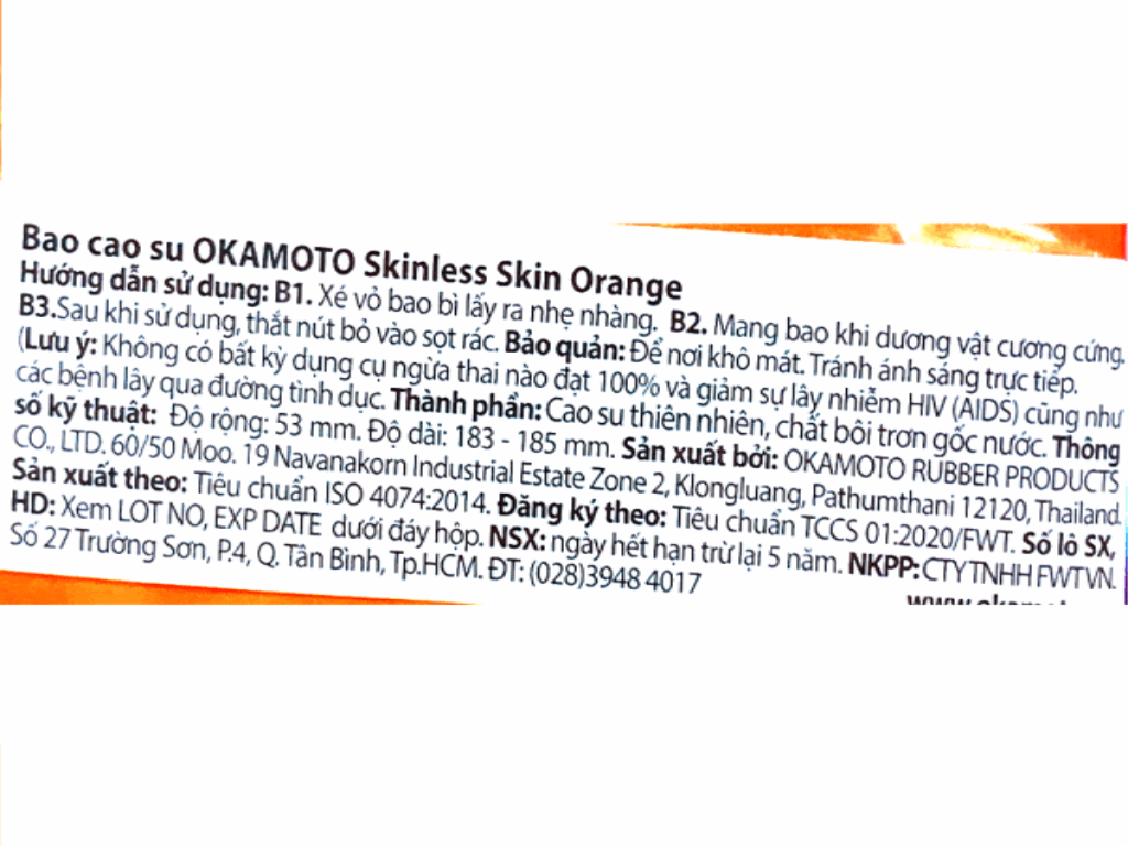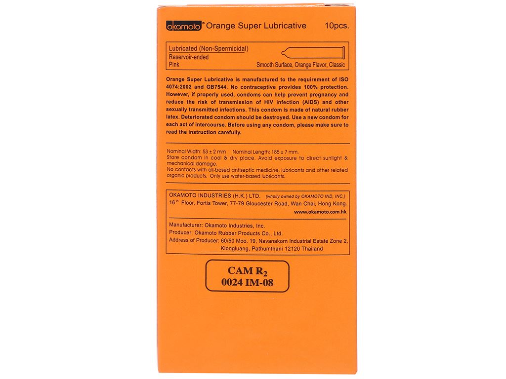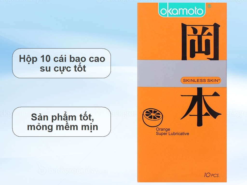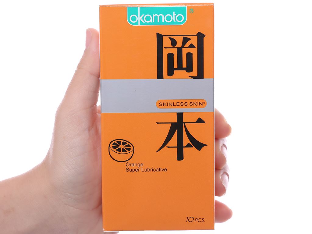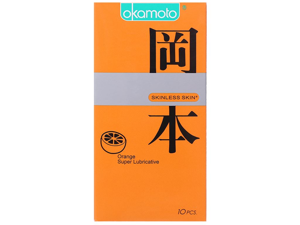 Hộp 10 cái bao cao su Okamoto Skinless Skin hương cam 53mm