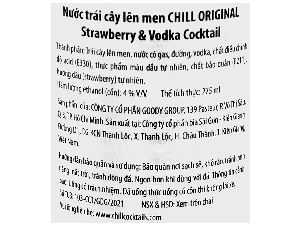 Nước trái cây lên men Chill Strawberry Vodka vị dâu chai 275ml