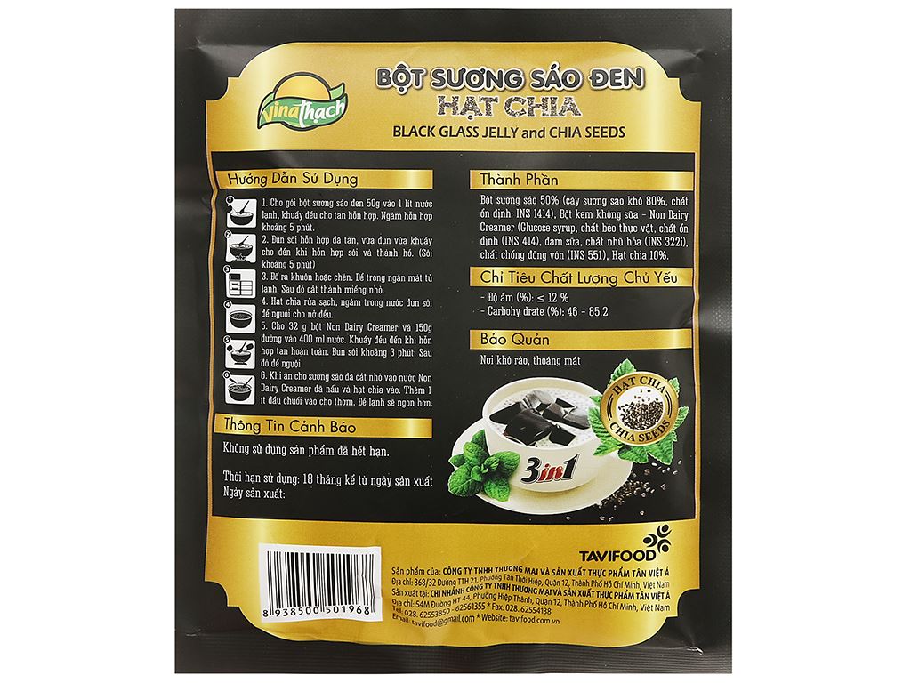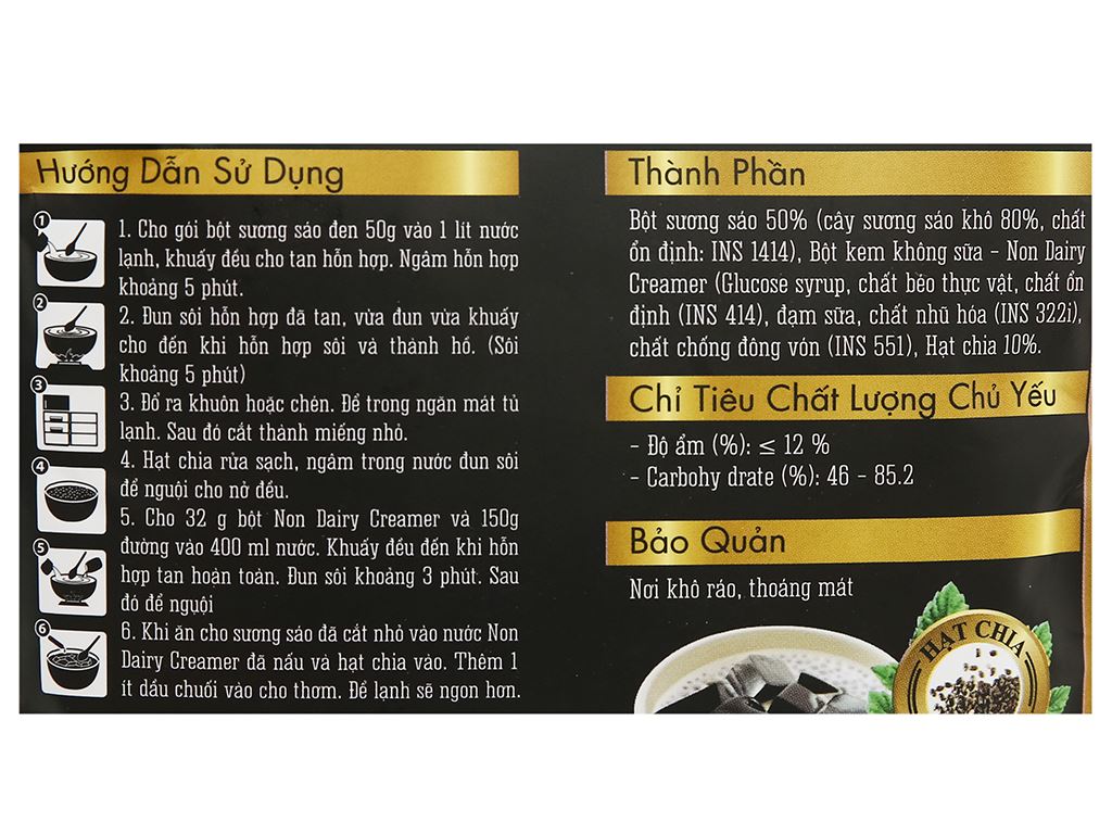 Sương sáo đen hạt chia VinaThạch gói 90g