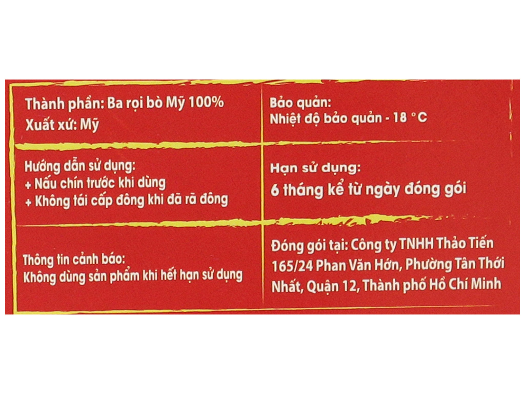 Thịt ba rọi bò Thảo Tiến Foods khay 300g