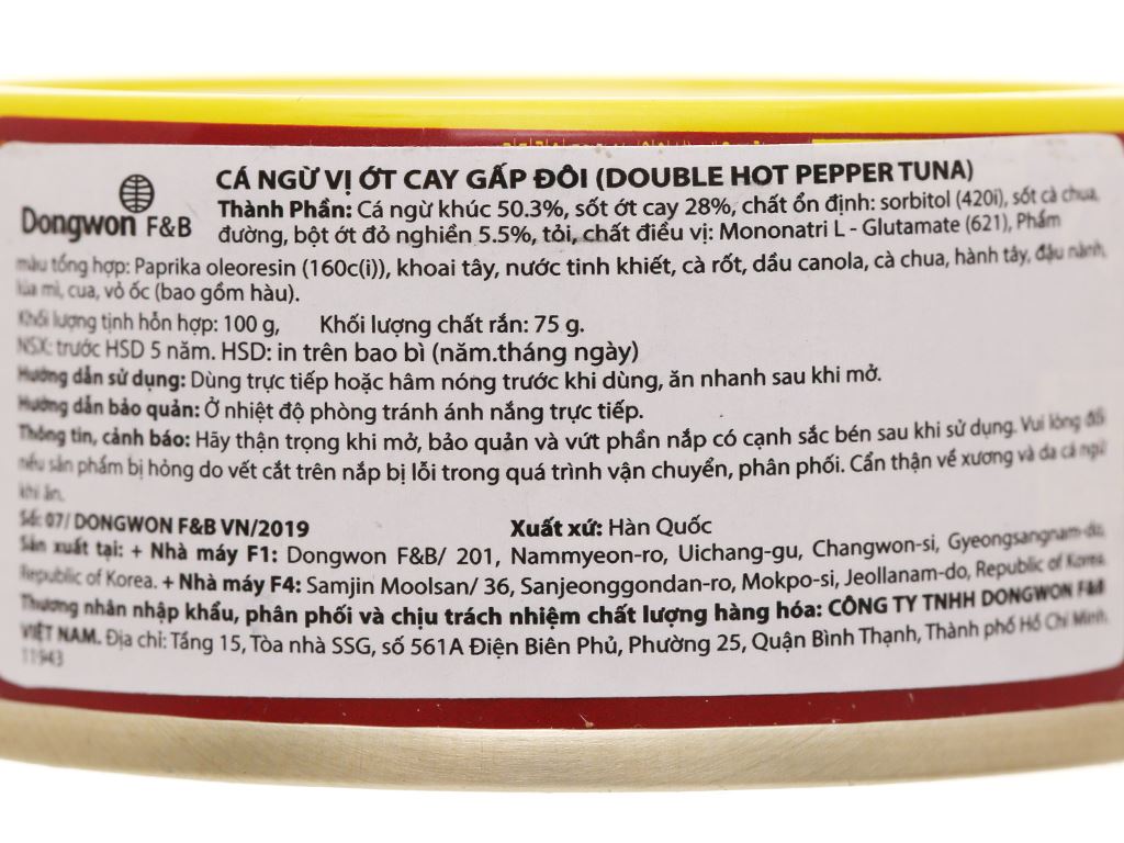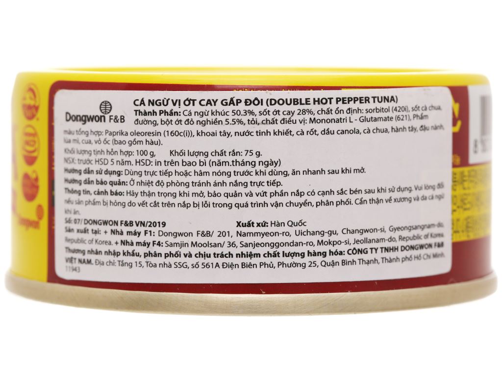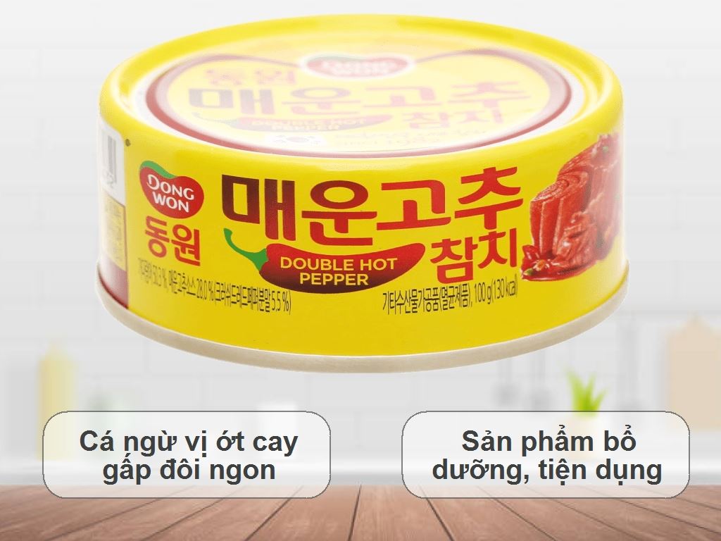 Cá ngừ vị ớt cay gấp đôi Dongwon hộp 100g