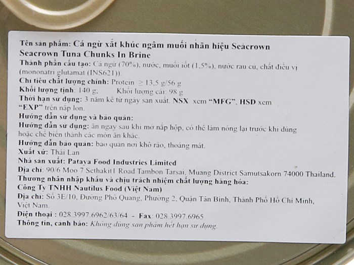 Cá ngừ ngâm muối xắt khúc Sea Crown hộp 140g