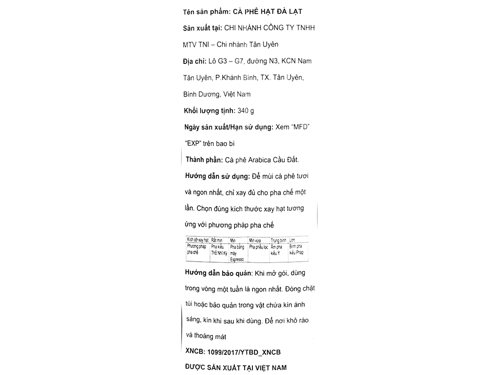 Cà phê nguyên hạt TNI King Coffee Đà Lạt 340g
