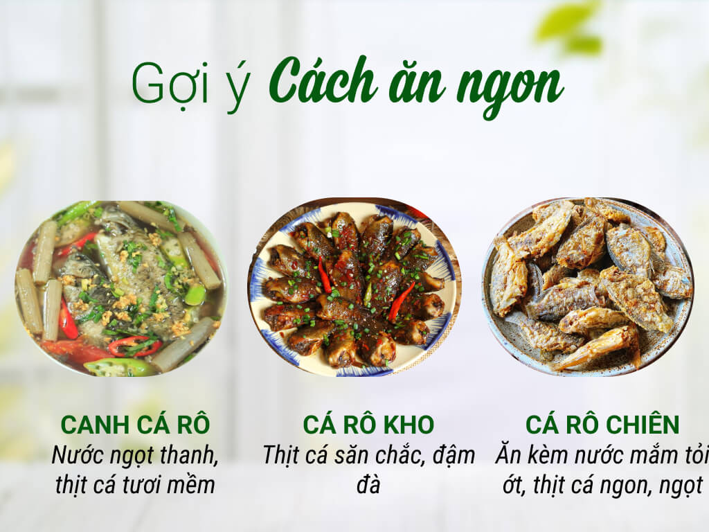 - Cá rô đồng được làm sẵn, thịt cá thơm, bùi, béo mà không ngán, dễ tiêu hóa. Loại cá rô lớn tuy rằng hơi nhiều xương nhưng với cá rô đồng thì xương sẽ rất mềm nếu được chiên giòn rụm.