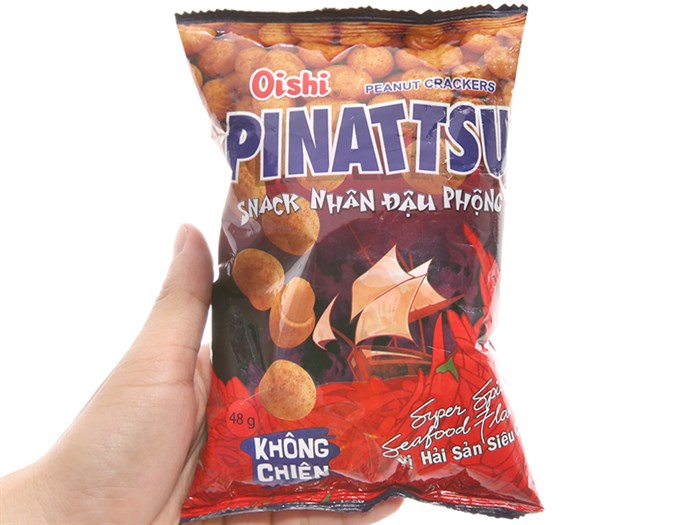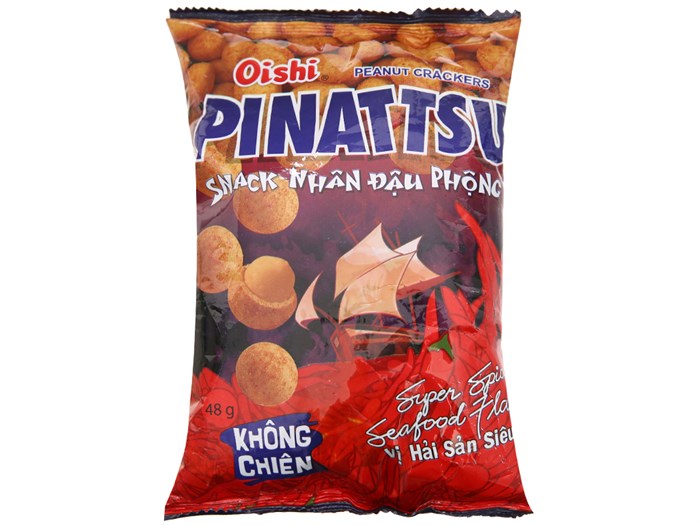 Snack nhân đậu phộng vị hải sản siêu cay Pinattsu Oishi gói 48g