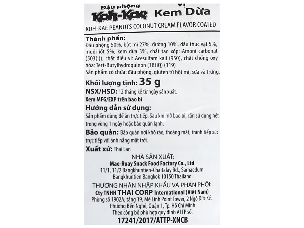 Đậu phộng vị kem dừa Koh-Kae gói 35g
