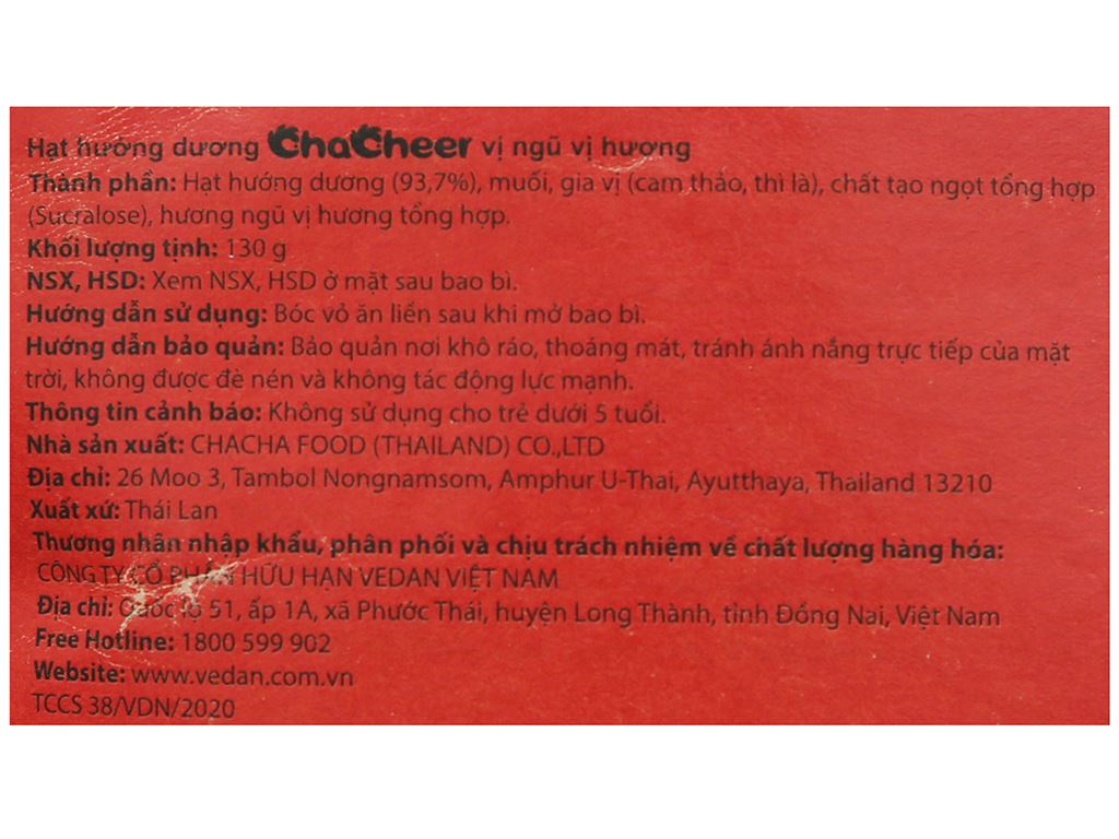 Hạt hướng dương vị ngũ vị hương Chacheer gói 130g