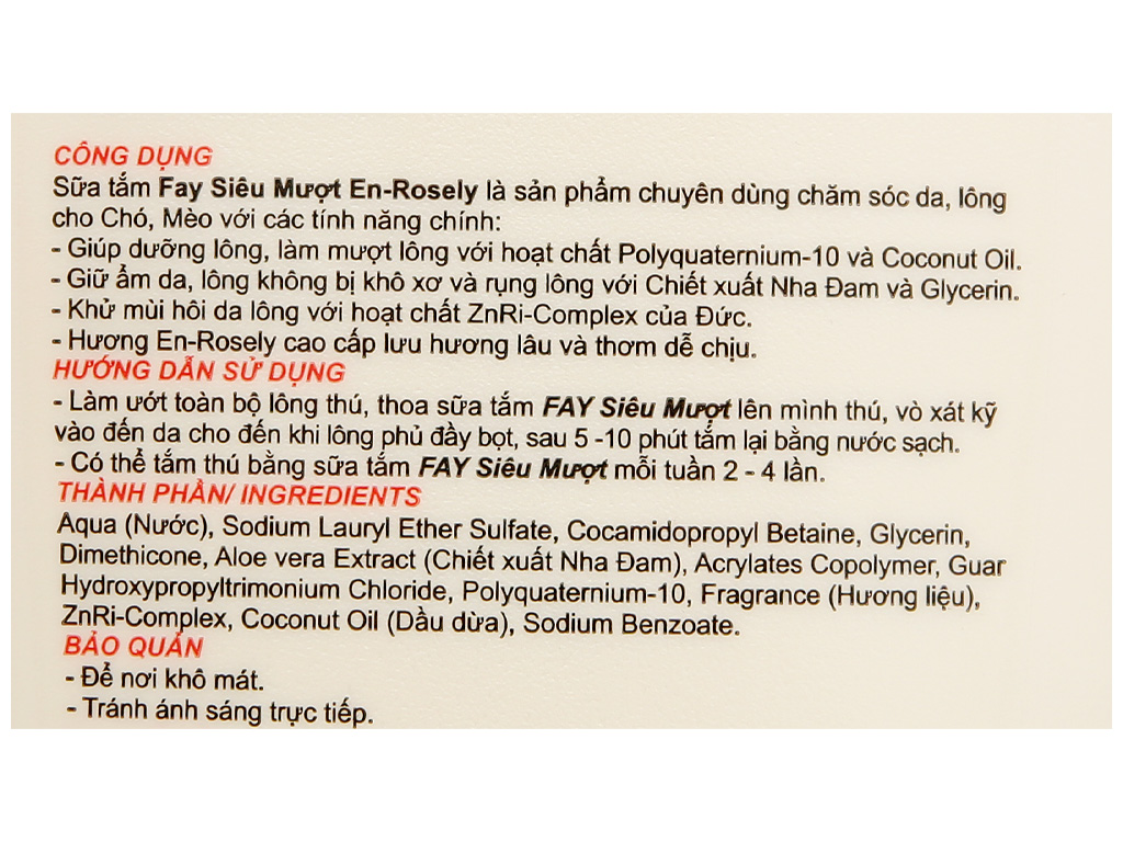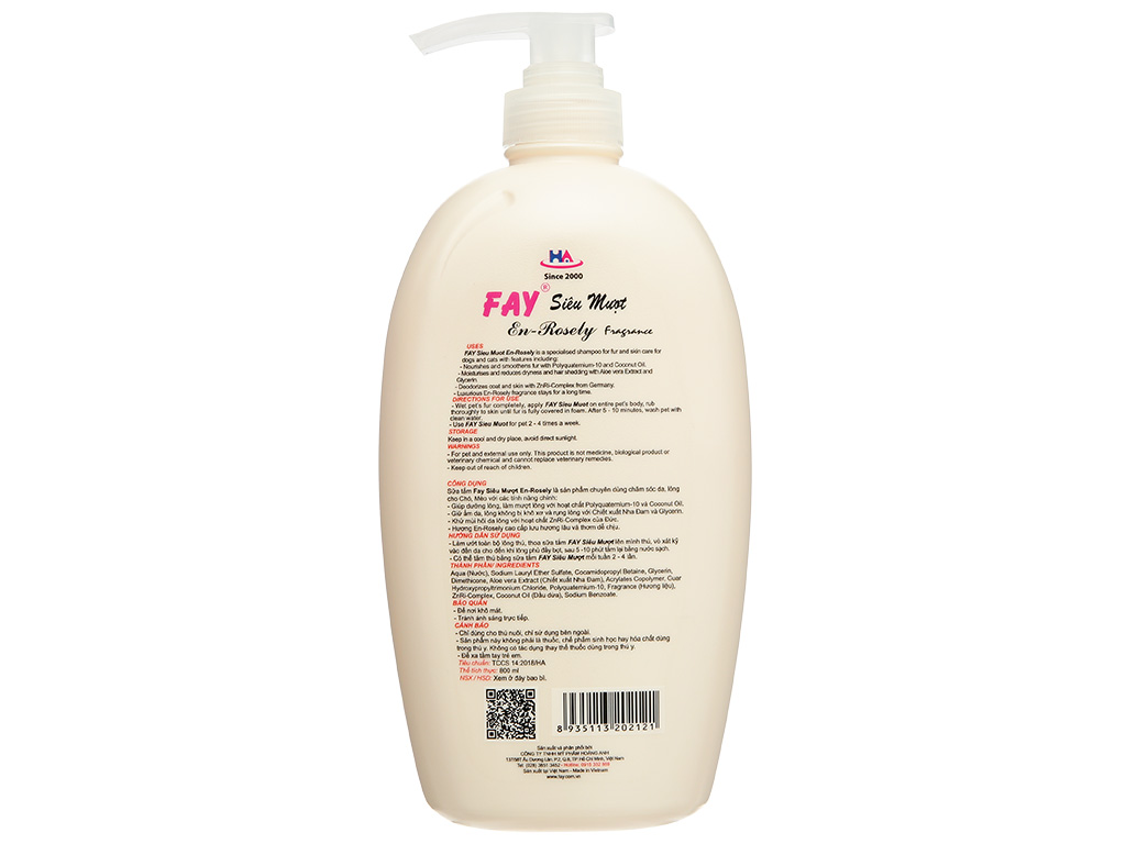 Sữa tắm chó mèo siêu mượt Fay chai 800ml