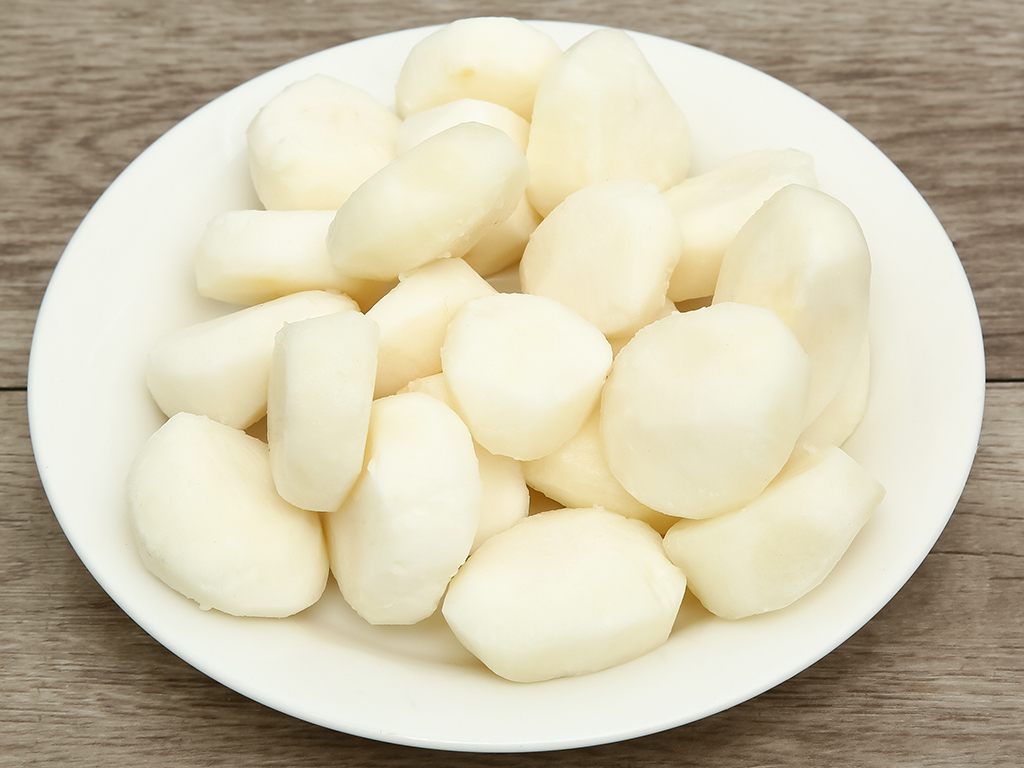Củ năng tươi ngon, được gọt sạch vỏ, không sử dụng chất bảo quản, đóng gói hút chân không cẩn thận.