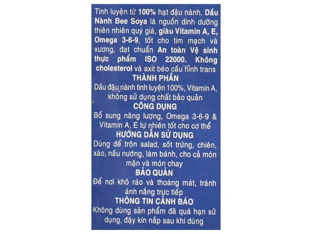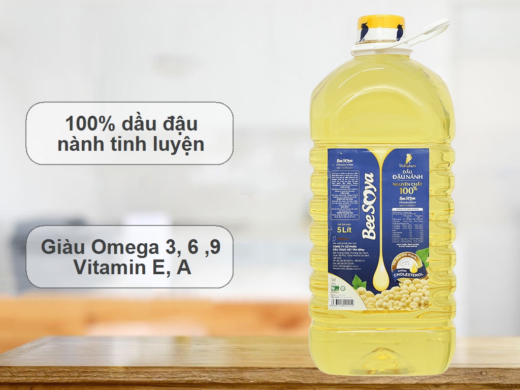 Dầu đậu nành nguyên chất Bee Soya Nakydaco can 5 lít