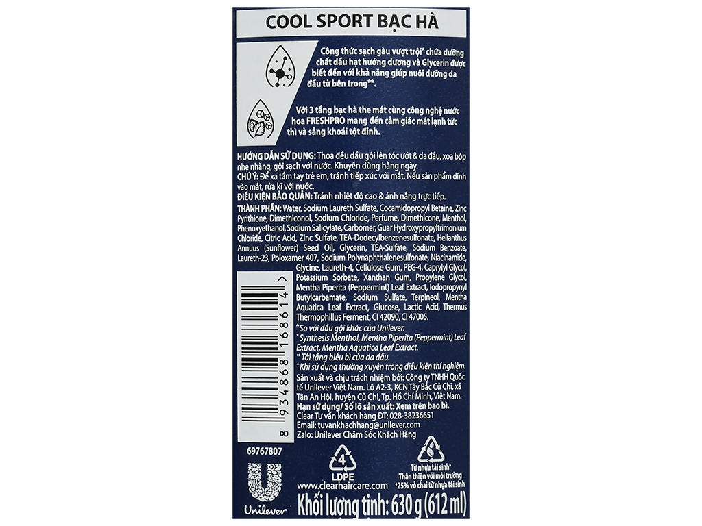 Dầu gội Clear Men bạc hà mát lạnh 612ml
