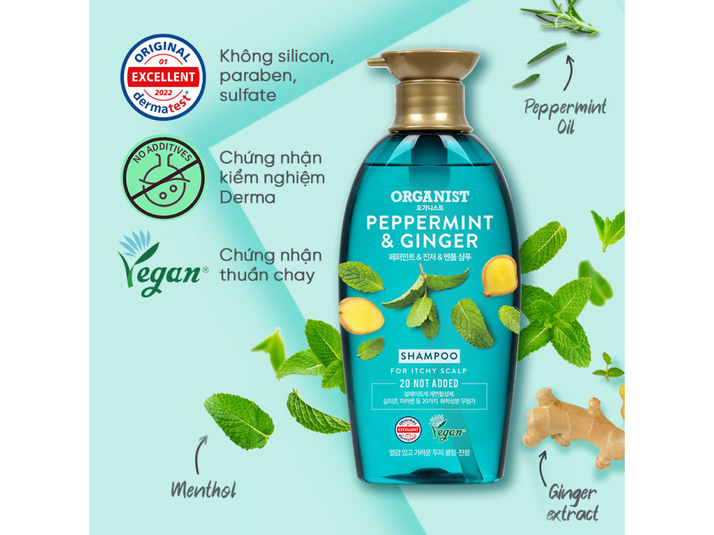 Dầu gội dưỡng tóc Organist gừng và bạc hà 500ml