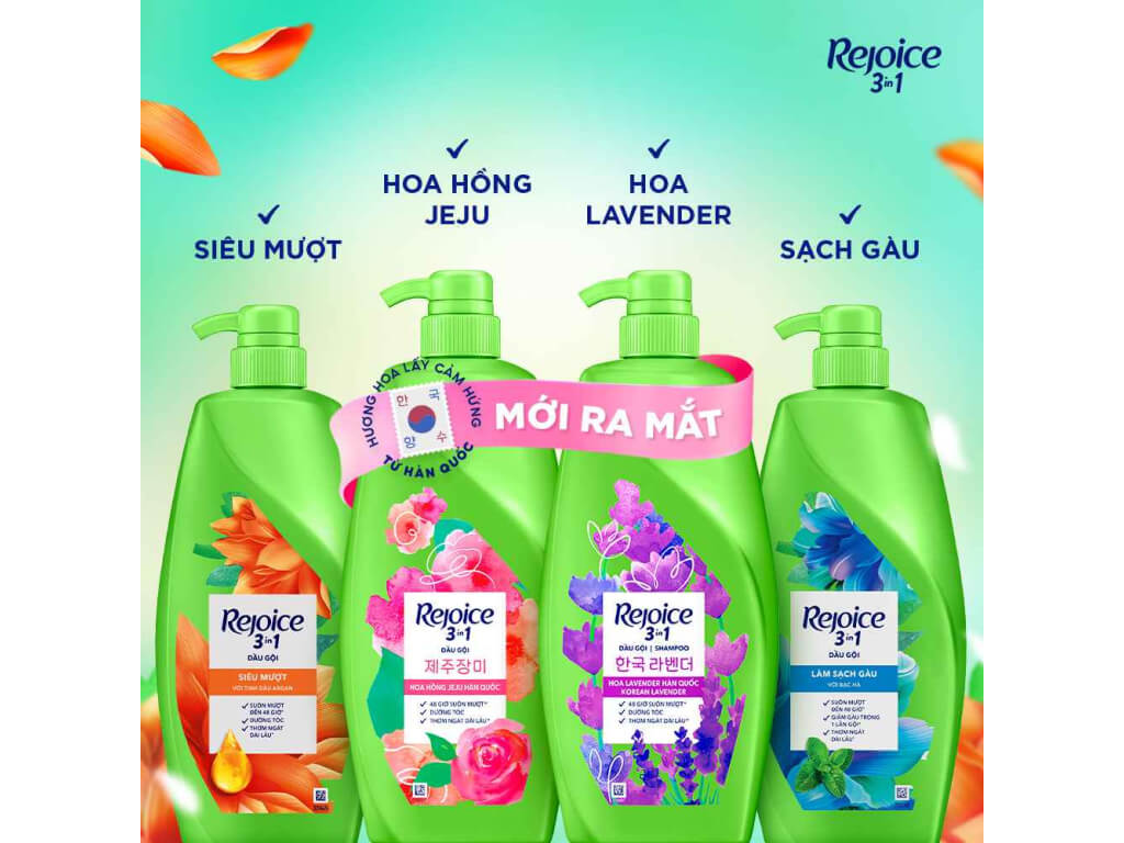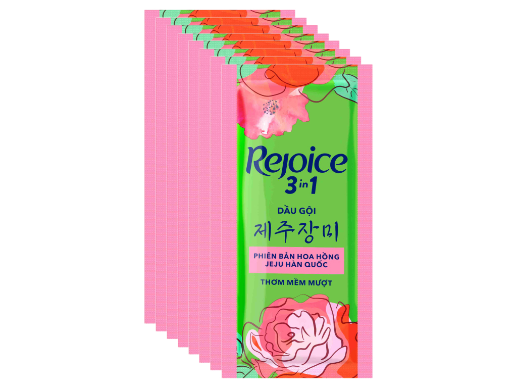 Dầu gội Rejoice thơm mềm mượt hương hoa hồng Jeju 5.8ml x 10 gói