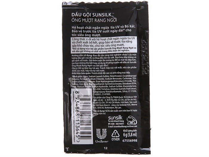 Dầu gội Sunsilk óng mượt rạng ngời 5.8ml x 10 gói