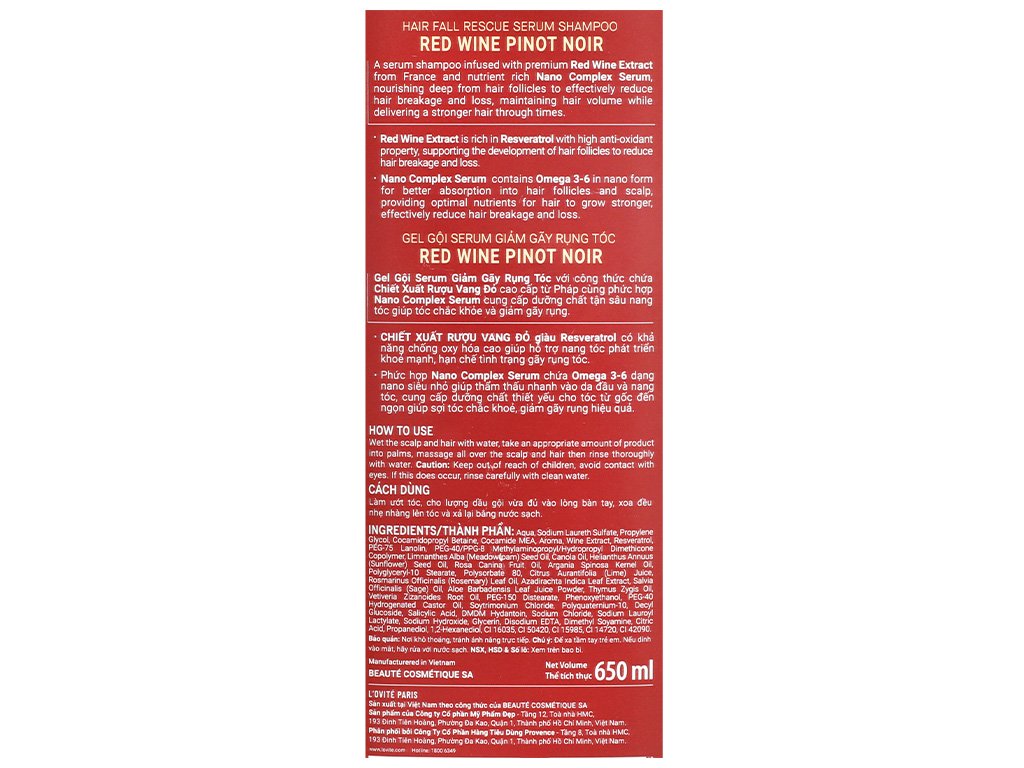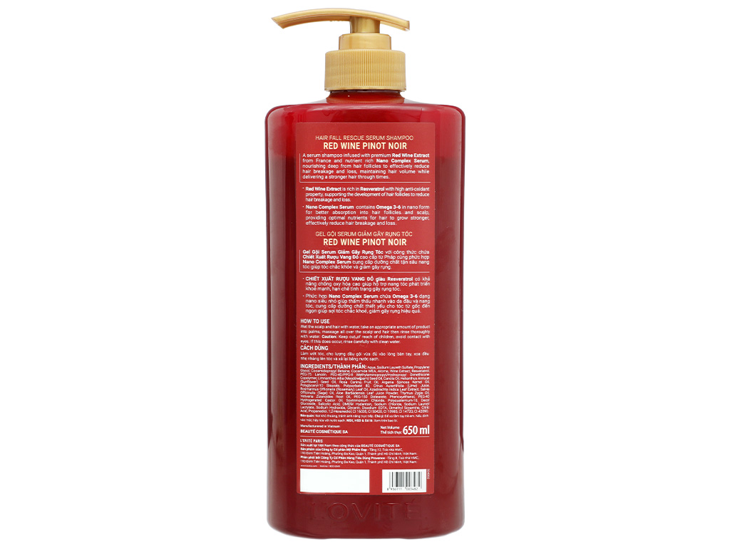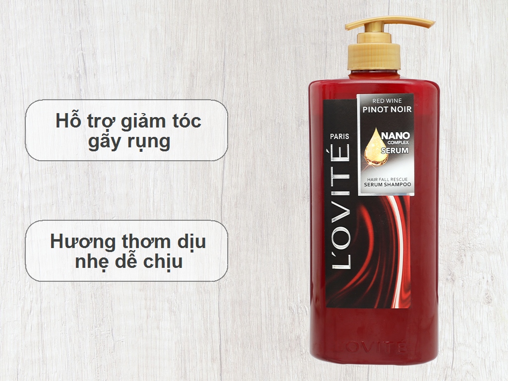 Gel gội serum L'ovité Paris Red Wine Pinot Noir giảm gãy rụng 650ml
