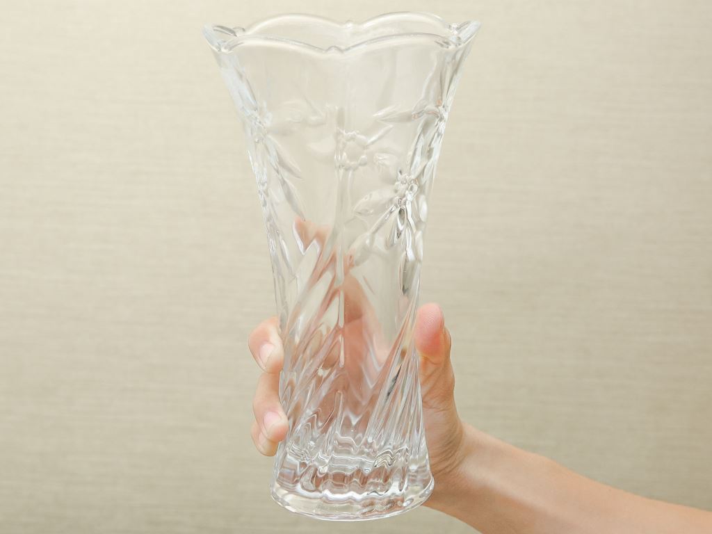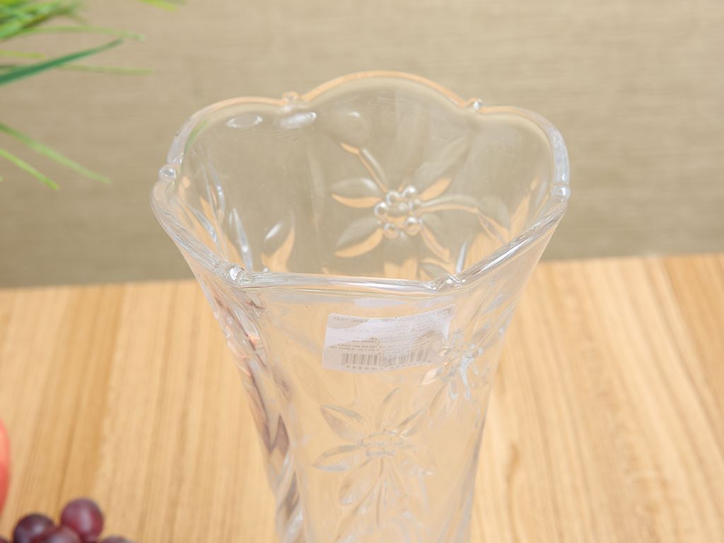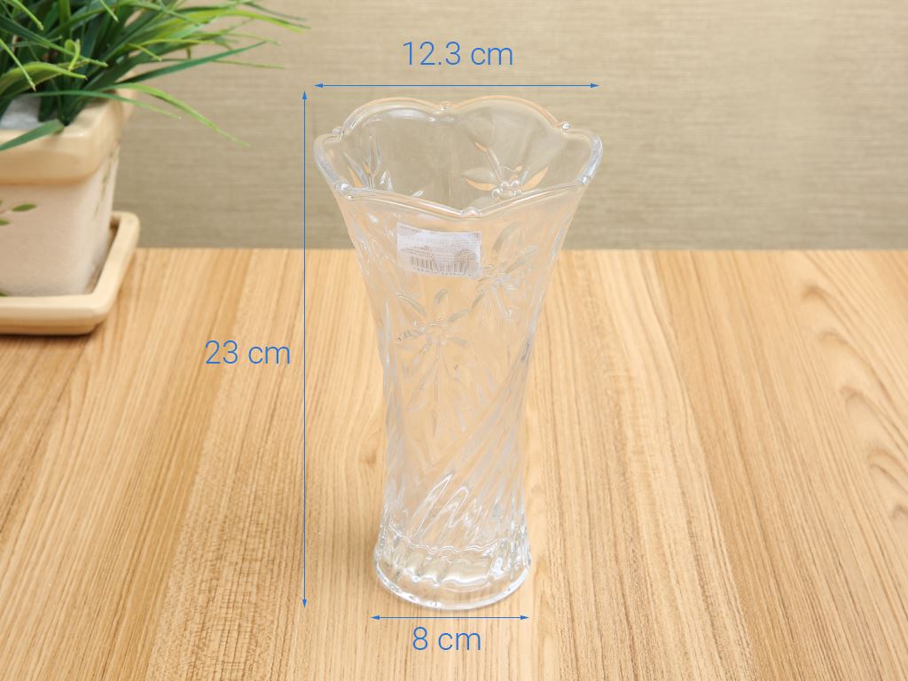 Bình hoa thuỷ tinh hoa mai trắng Chung Mộc Hùng 23cm