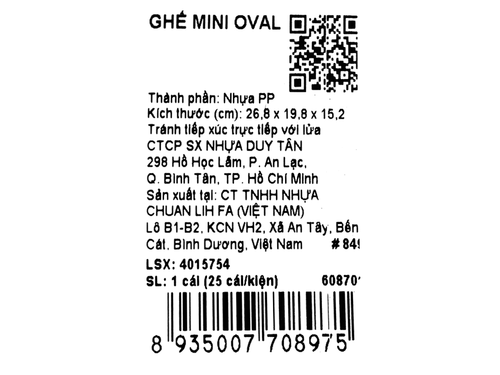 Ghế nhựa oval Duy Tân 14.5 x 26cm (giao màu ngẫu nhiên)