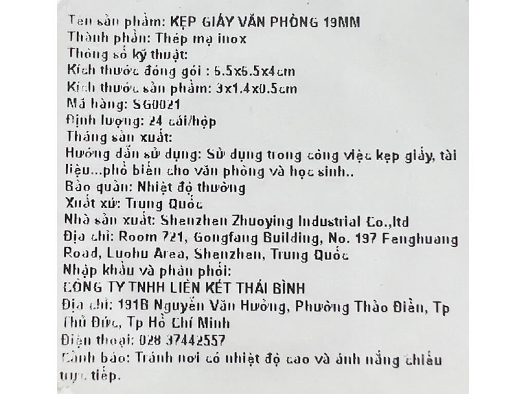 Kẹp giấy văn phòng UBL SG0021 1.9cm hộp 24 cái
