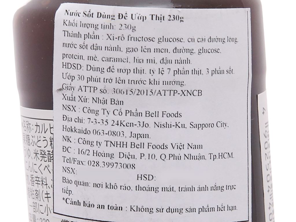 Nước sốt ướp thịt nướng Bell chai 230g