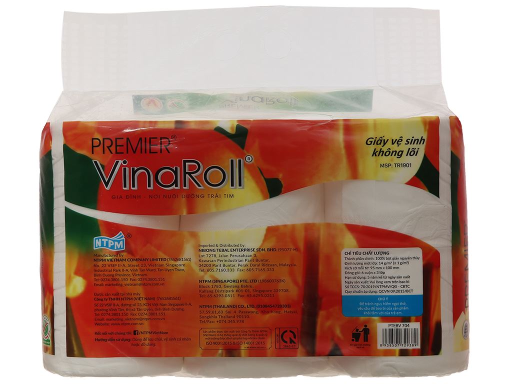 6 cuộn giấy vệ sinh PREMIER VinaRoll 3 lớp