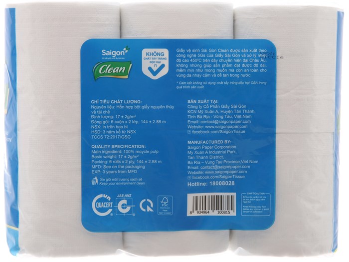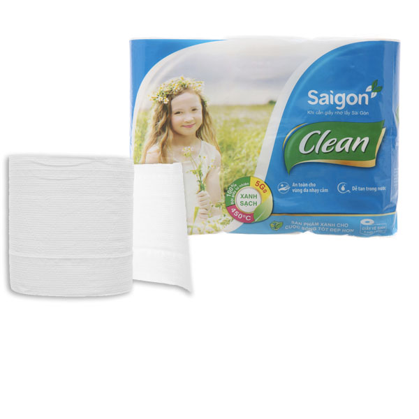 6 cuộn giấy vệ sinh Saigon Clean 2 lớp (10cm x 12cm)