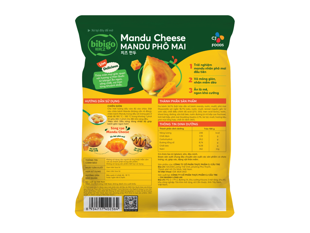 Bánh xếp nhân phô mai Bibigo gói 252g