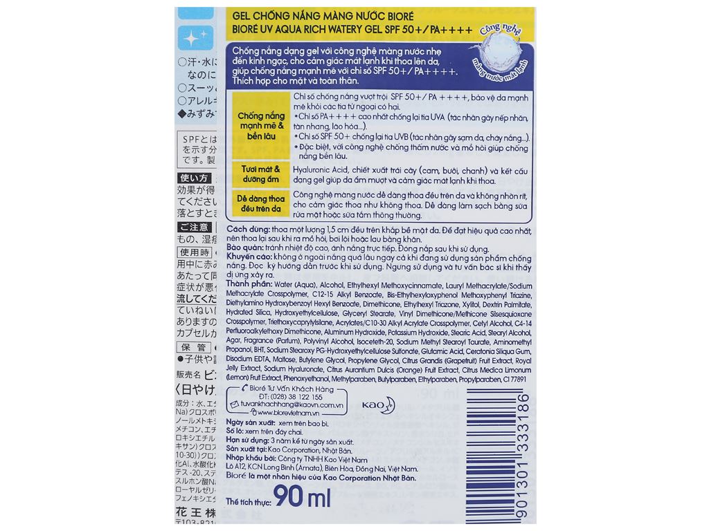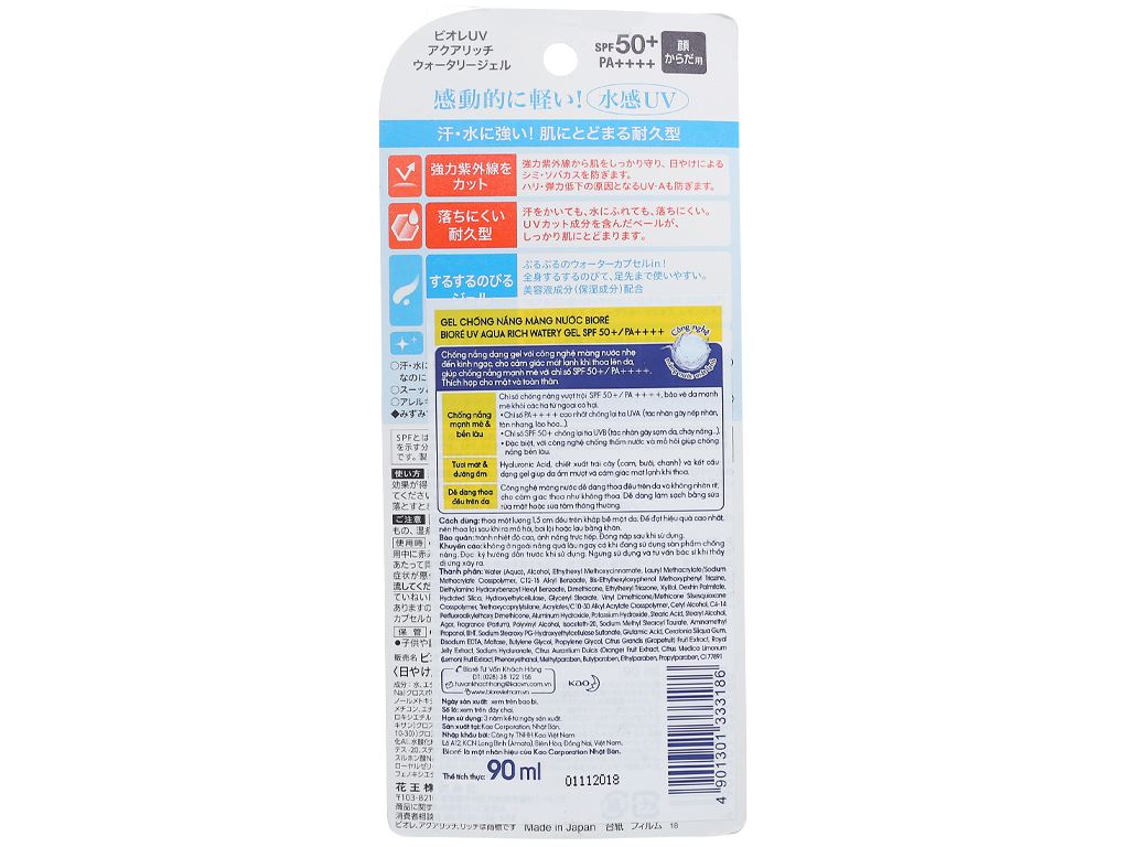 Gel chống nắng màng nước Bioré UV Aqua Rich SPF 50+/PA++++ 90ml