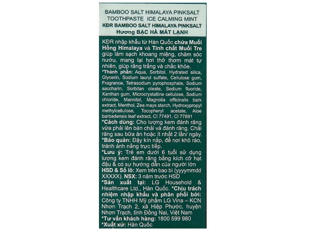 Kem đánh răng Bamboo Salt muối hồng Himalaya hương bạc hà 100g