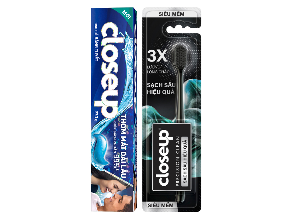 Kem đánh răng P/S tinh thể băng 230g & bàn chải Closeup Precision Clean
