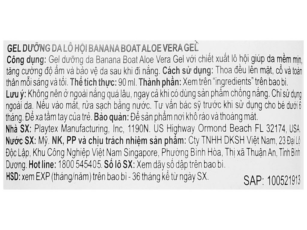 Gel lô hội Banana Boat Aloe Vera dưỡng ẩm 90ml