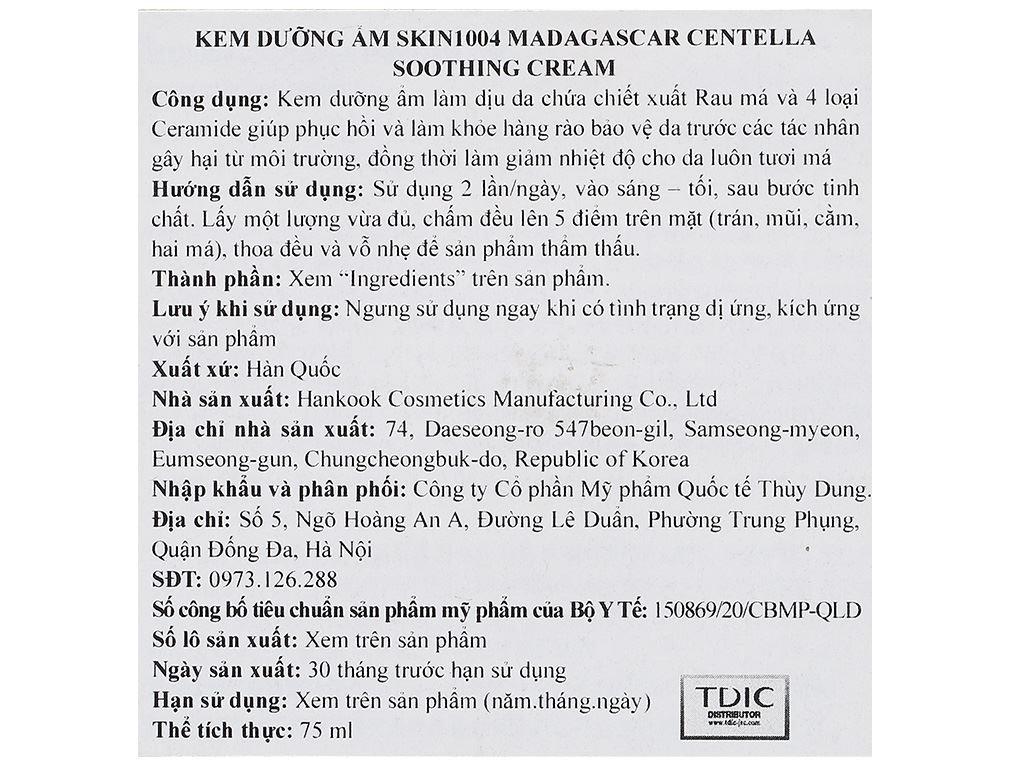 Kem dưỡng Skin1004 Madagascar Centella Soothing Cream làm dịu da 75ml